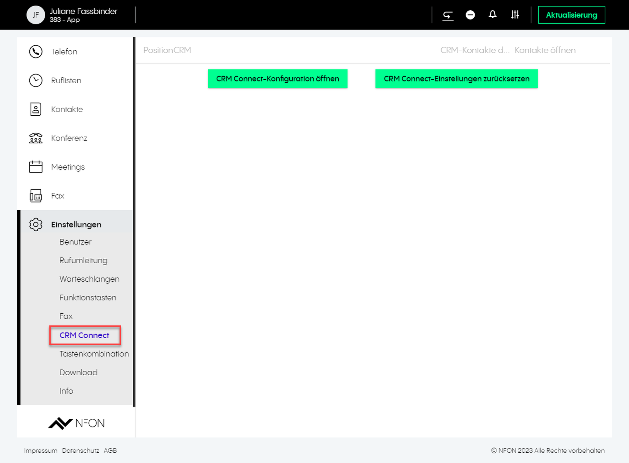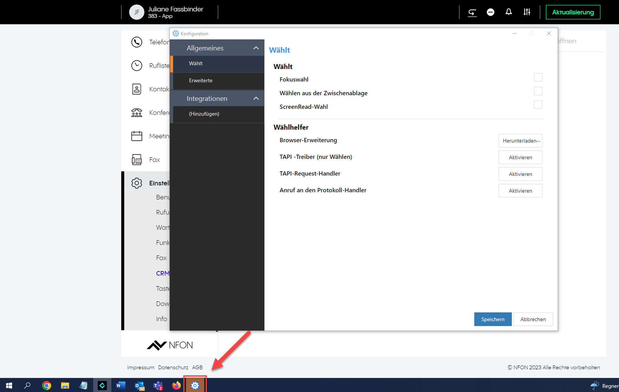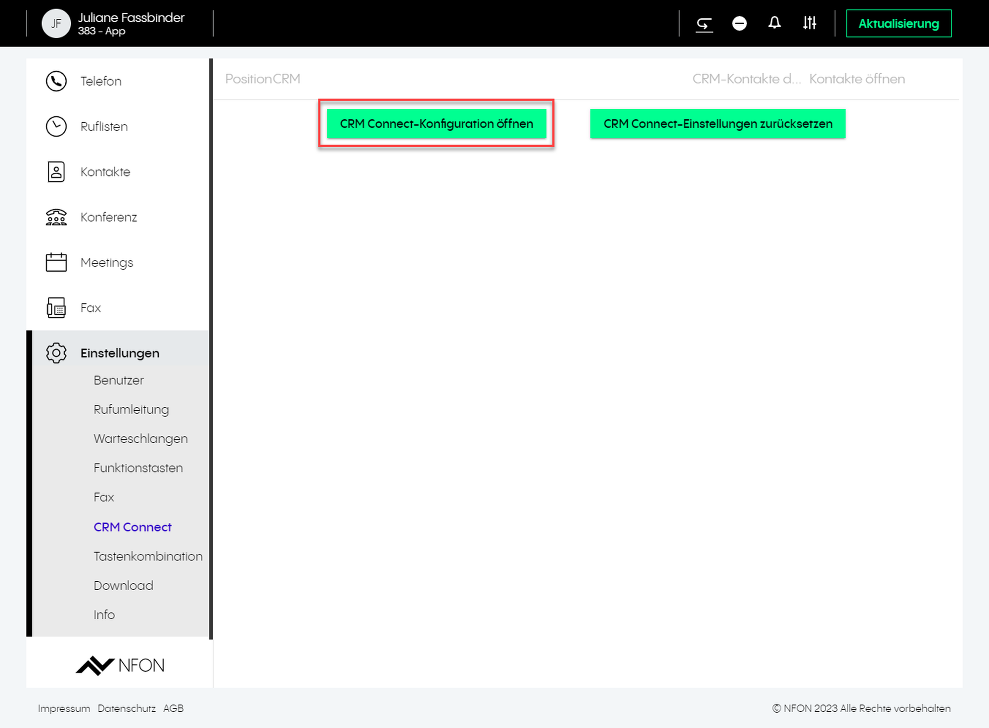 Die Nebenstellennummer aus dem Serviceportal muss dann mit dem Nutzer in der Systemkonfiguration der App verbunden werden.