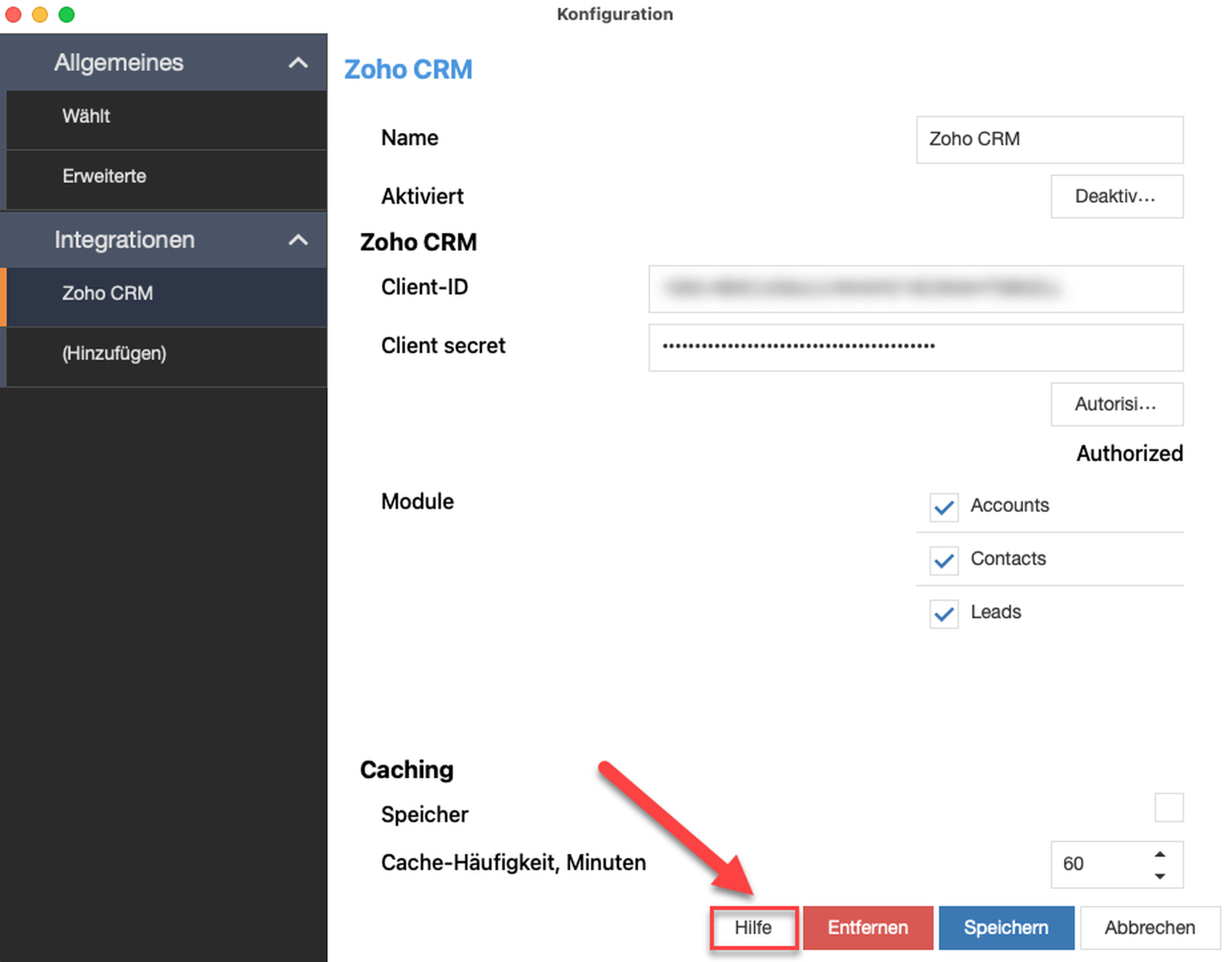 Klicken Sie im Tab Anrufe auf das Info-Icon, um: