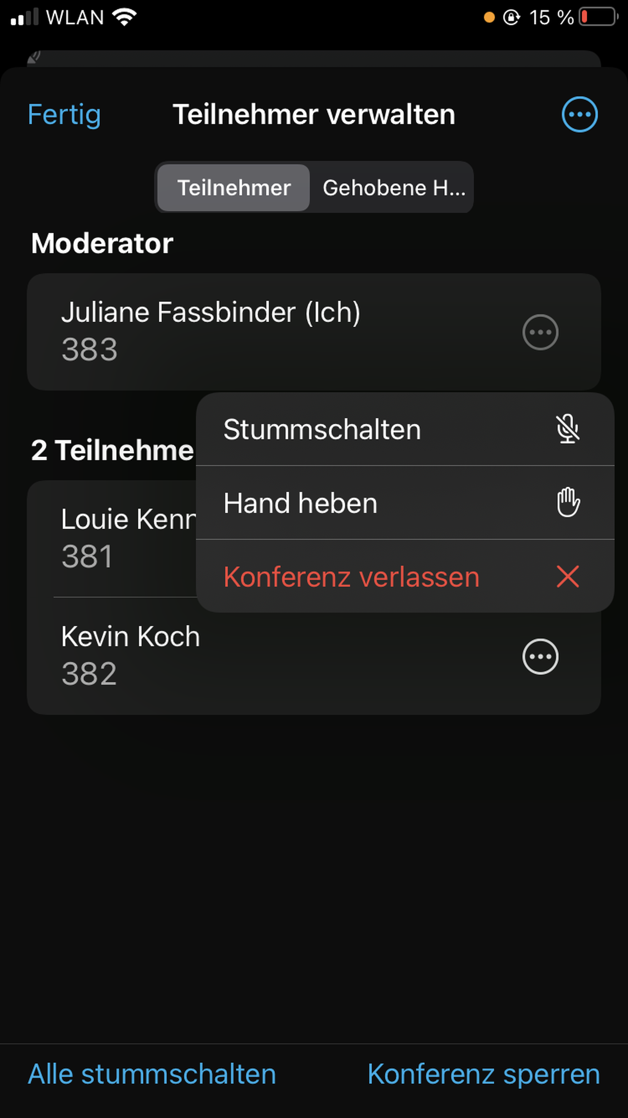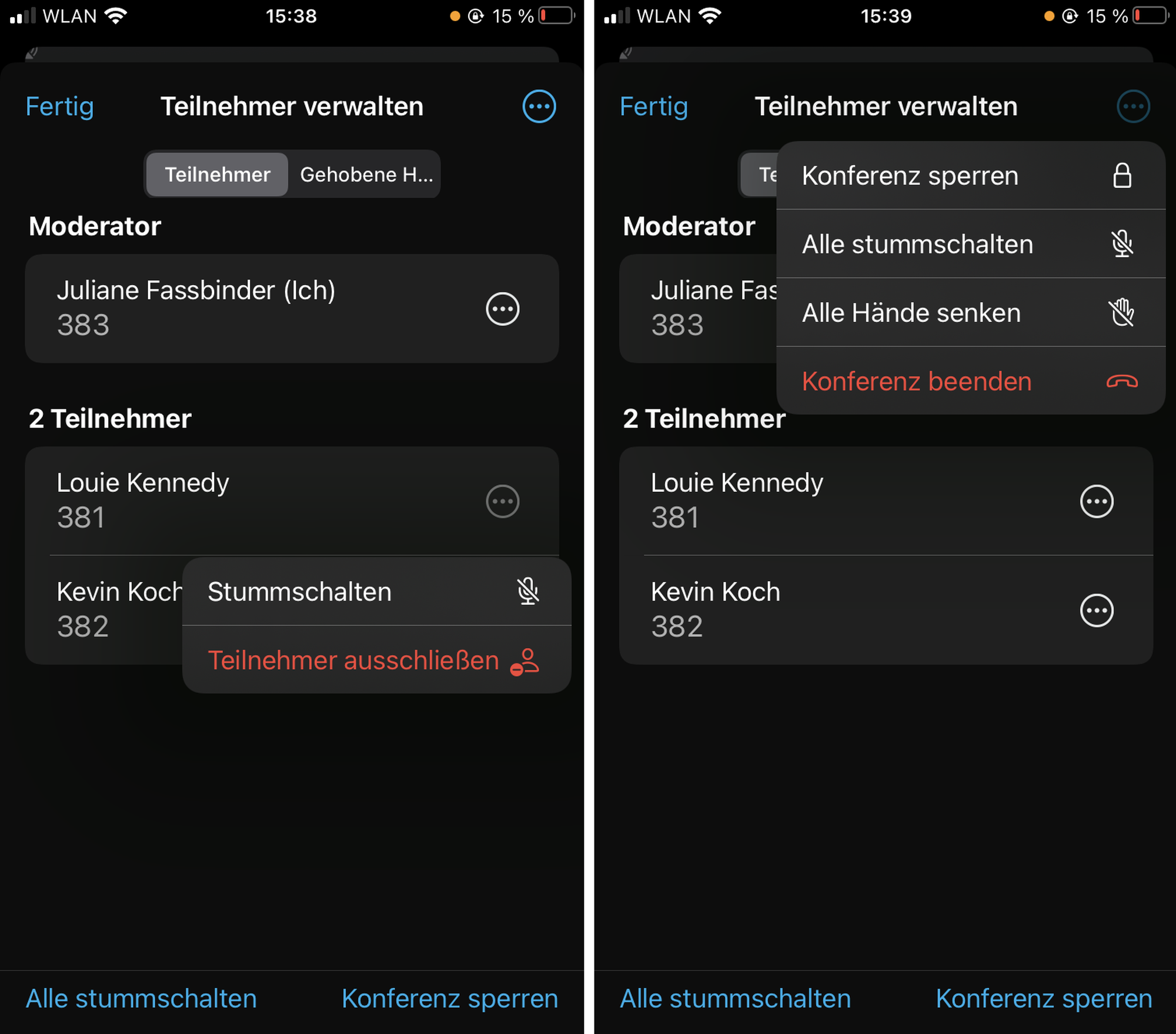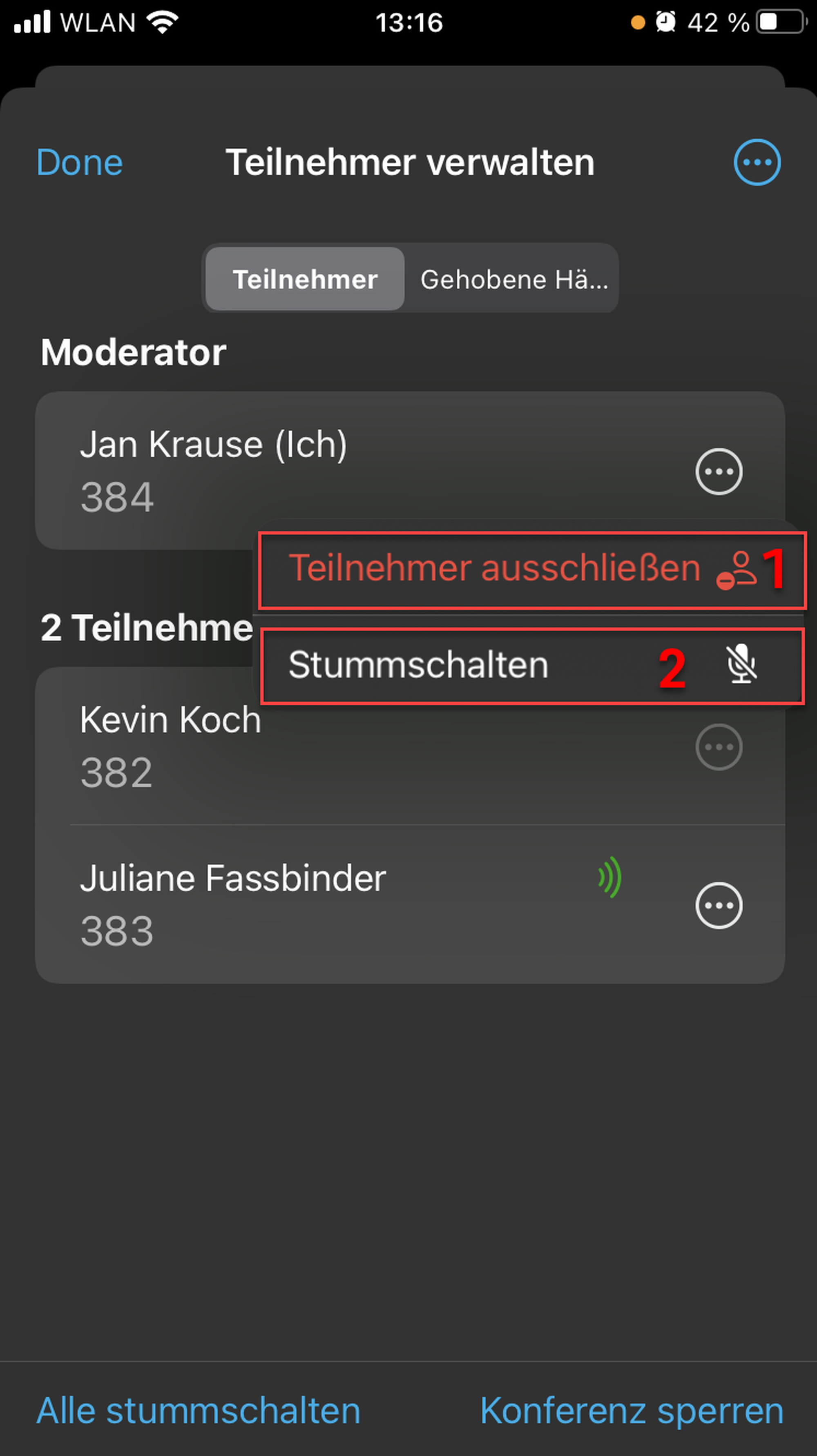 Als Moderator haben Sie zusätzliche Konferenzoptionen: