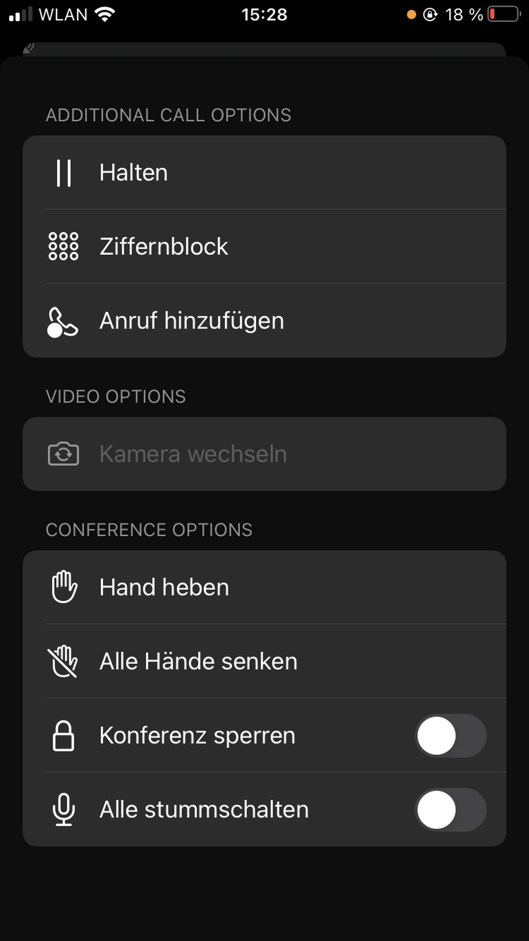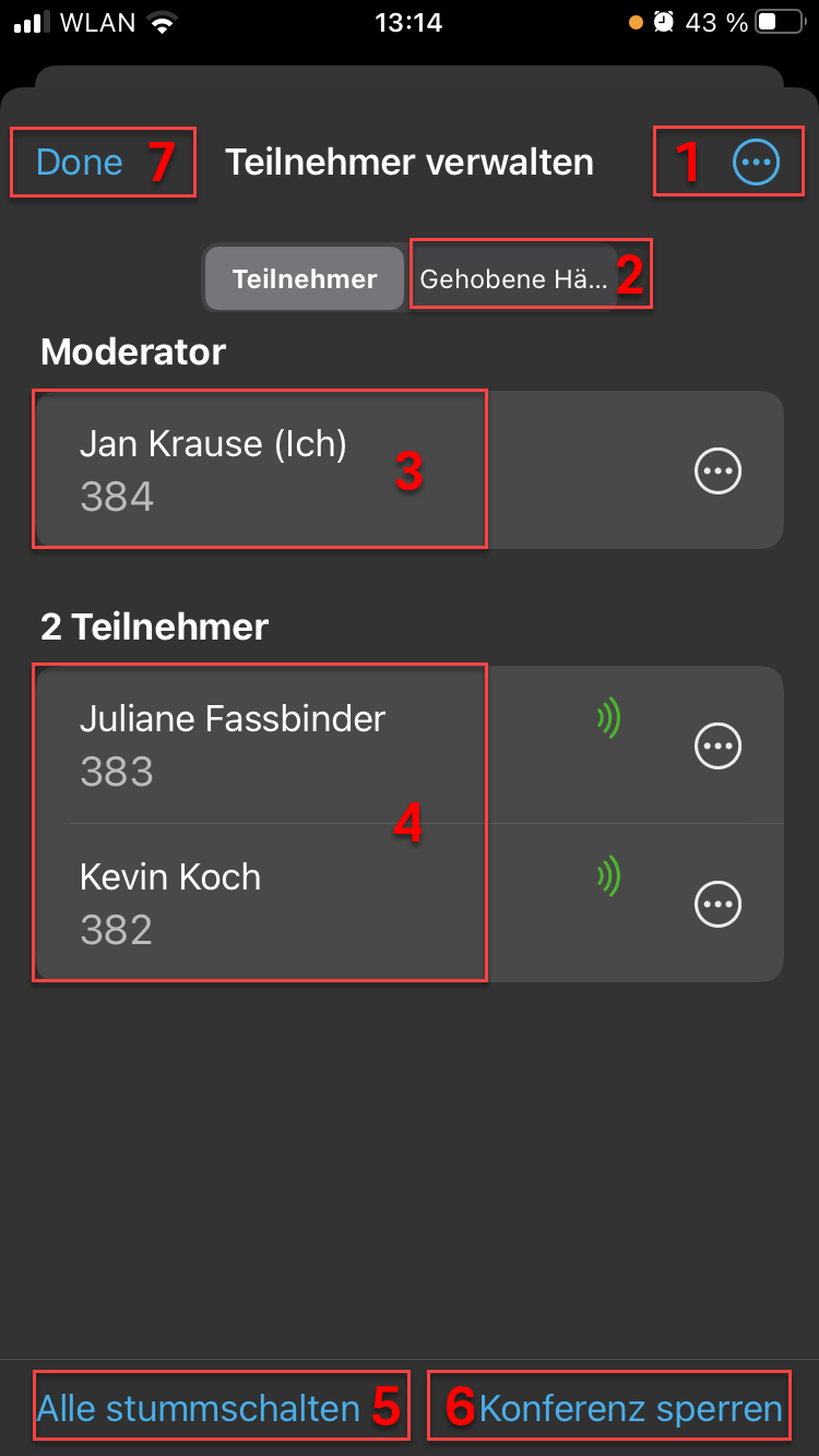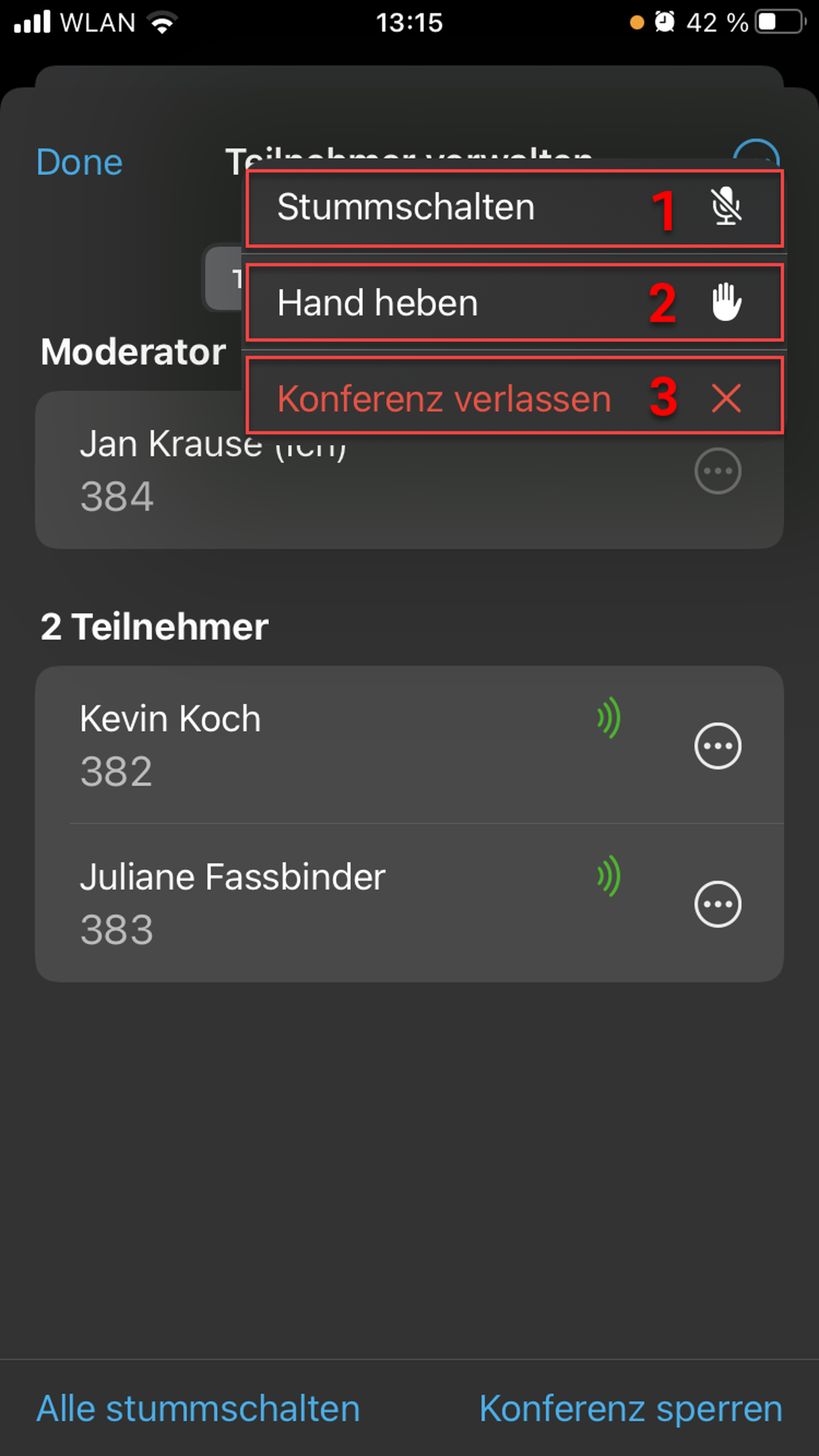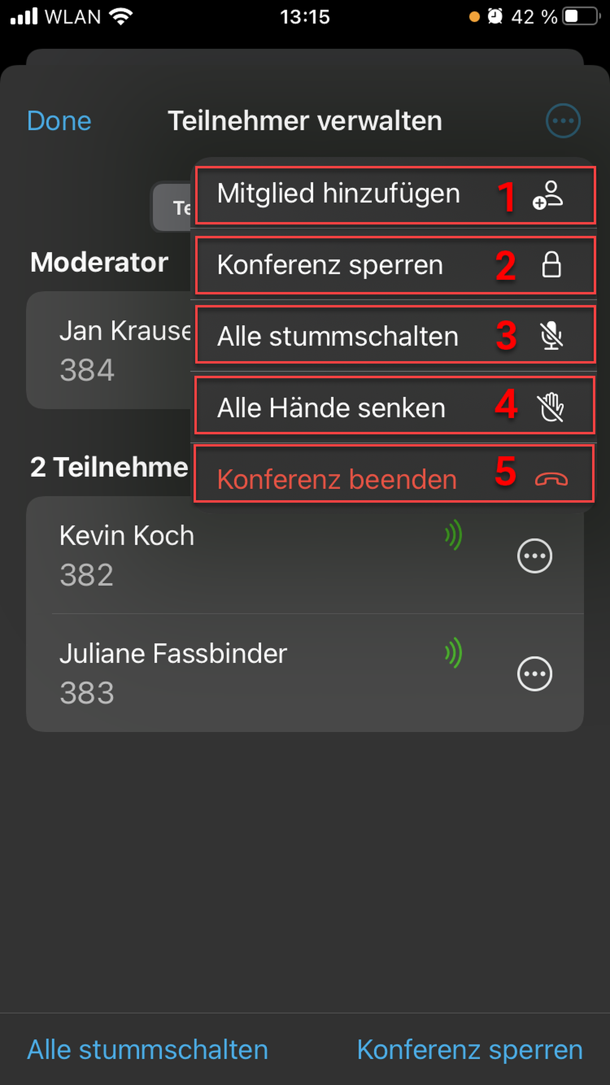 Als Moderator haben Sie zusätzliche Konferenzoptionen: