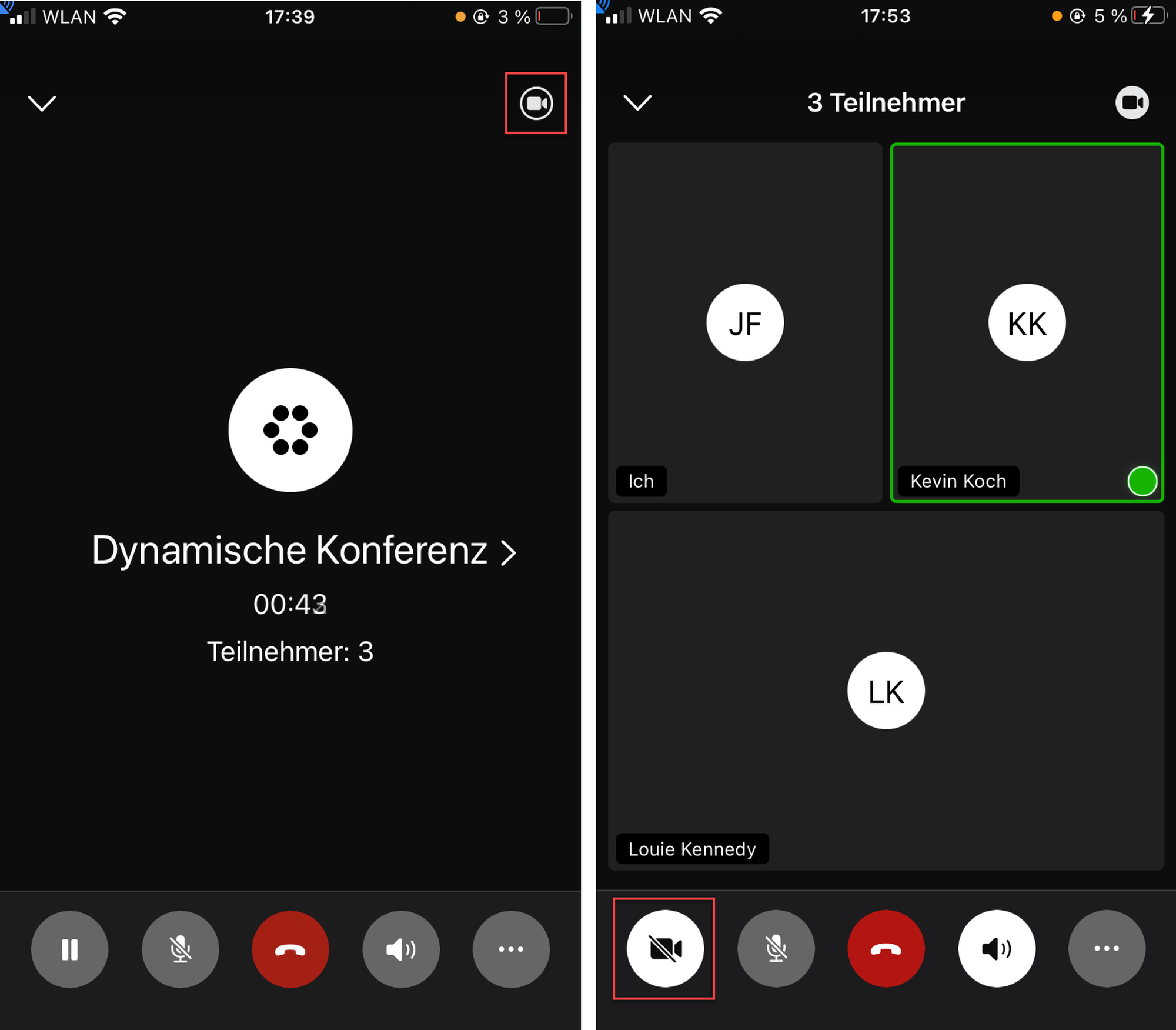 Wenn es mehr als 4 Teilnehmer gibt, wischen Sie nach rechts oder links, um andere Teilnehmer der Konferenz zu sehen.