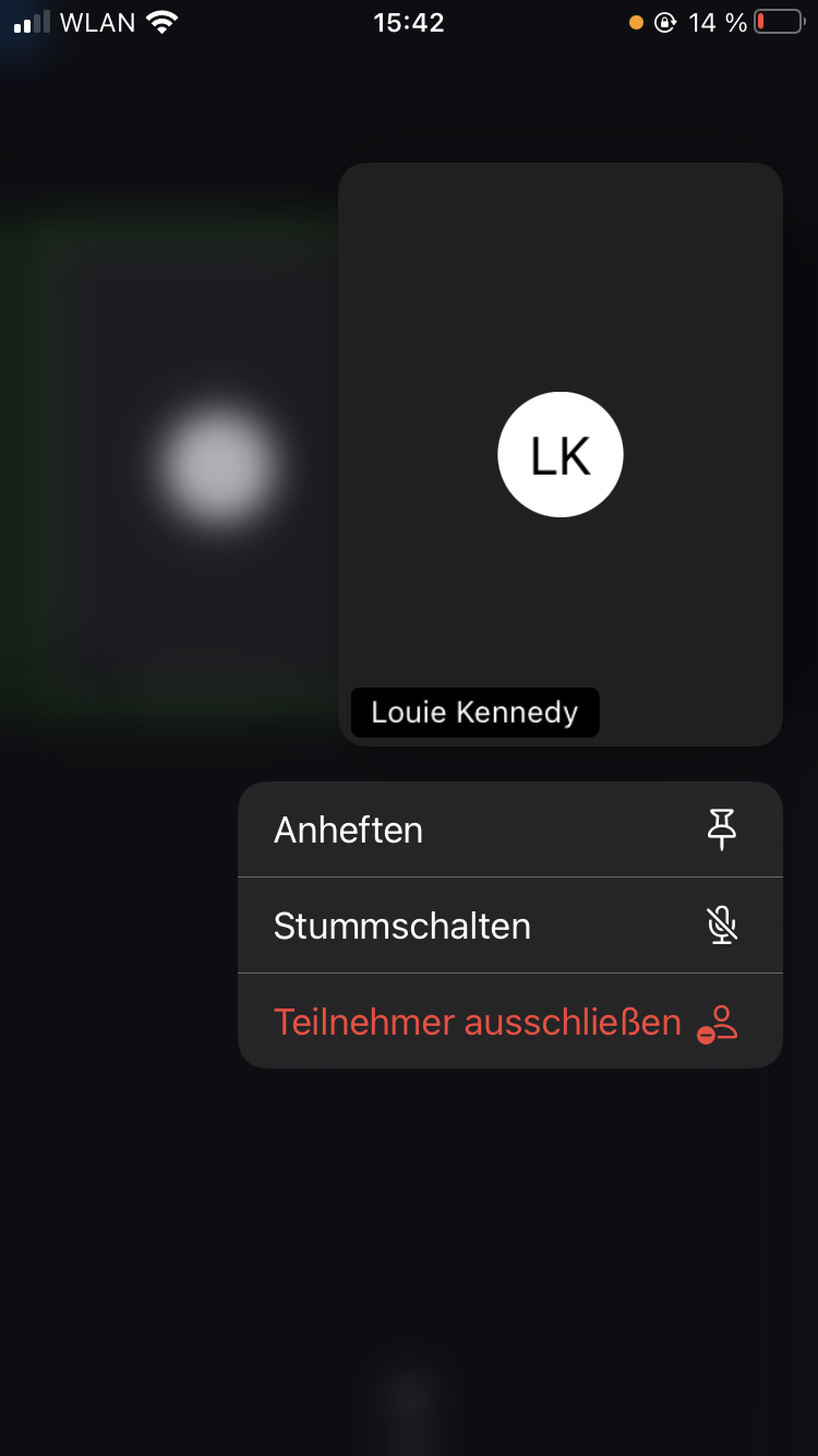 Bei langem Drücken auf das Video eines anderen Teilnehmers können Sie:
