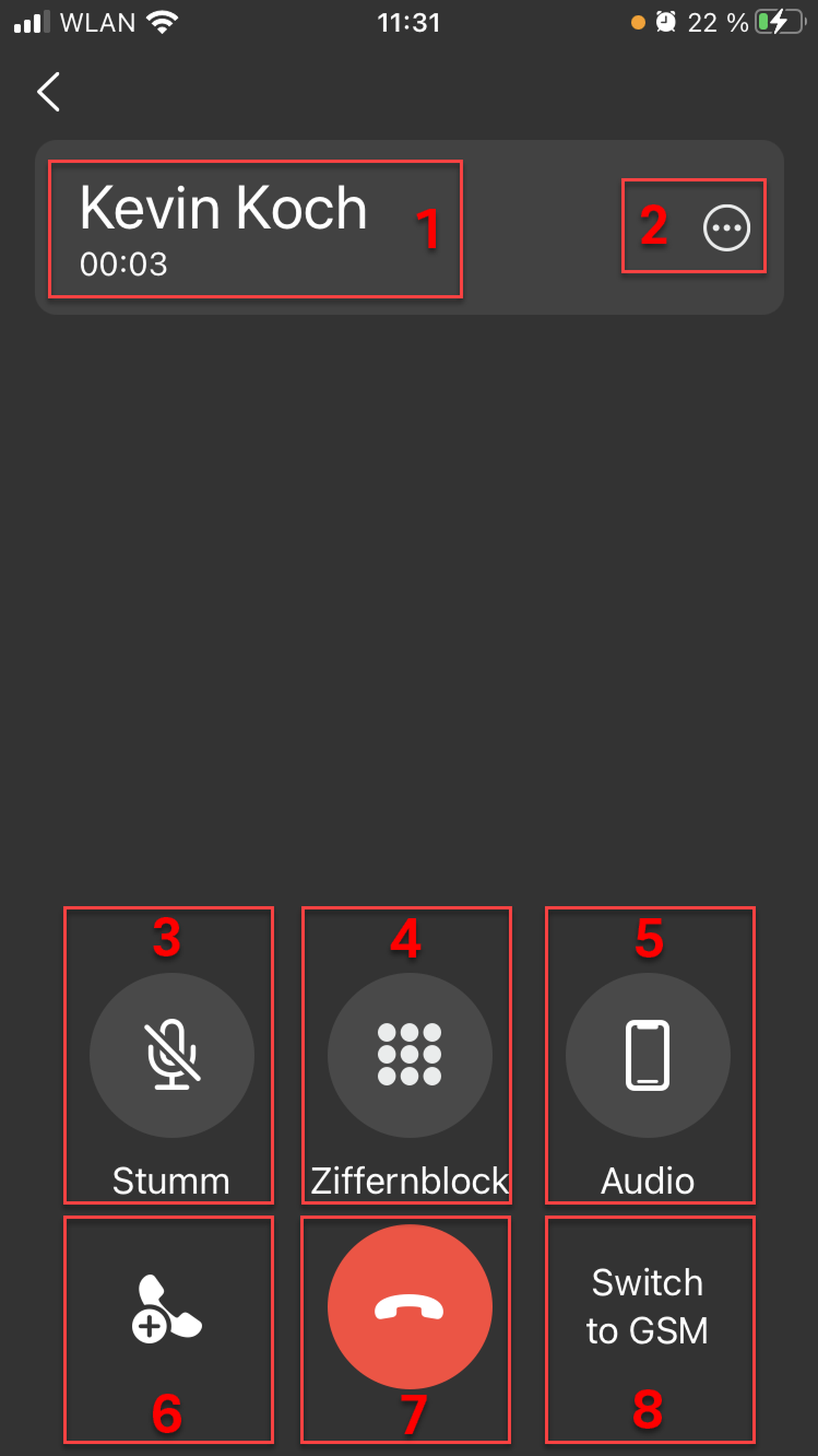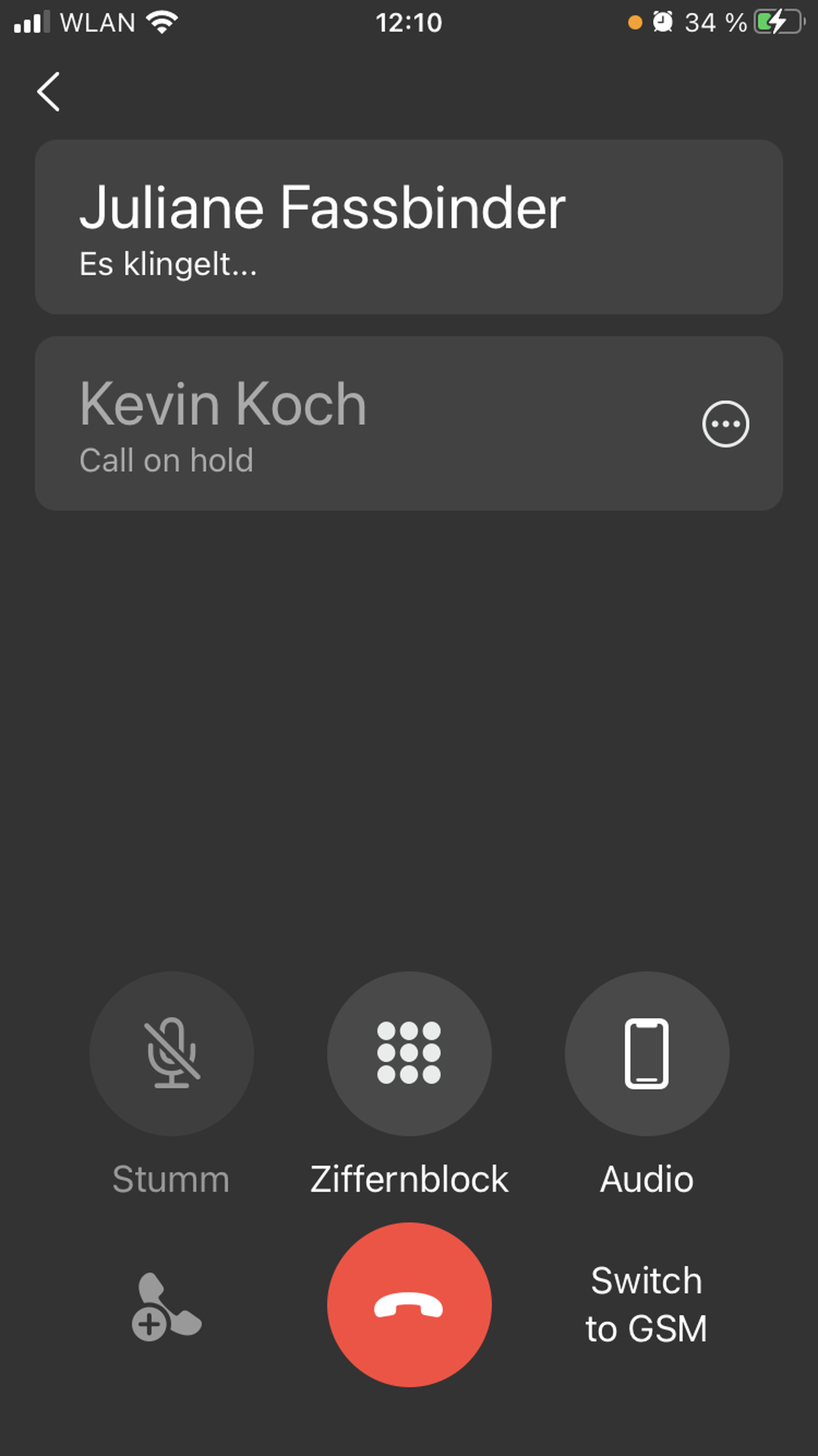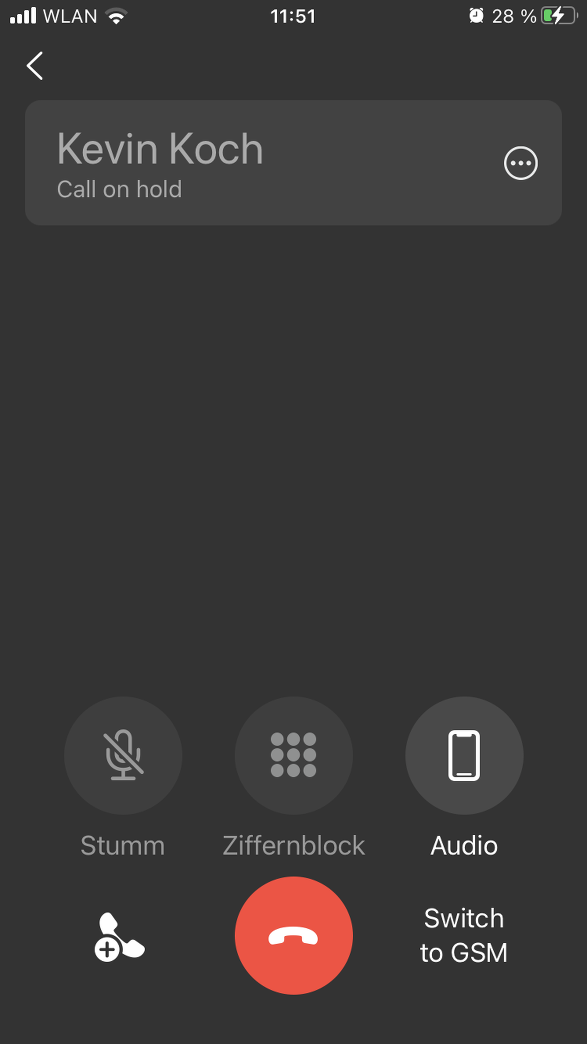 Bei einem 1:1-Audioanruf haben Sie auch die Möglichkeit, zu einem Videoanruf zu wechseln.