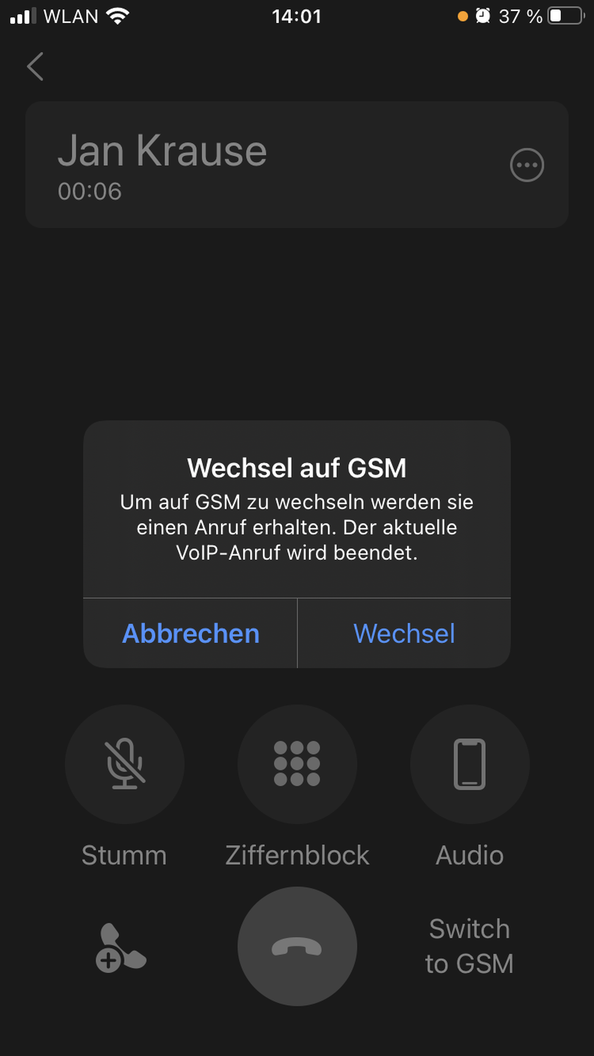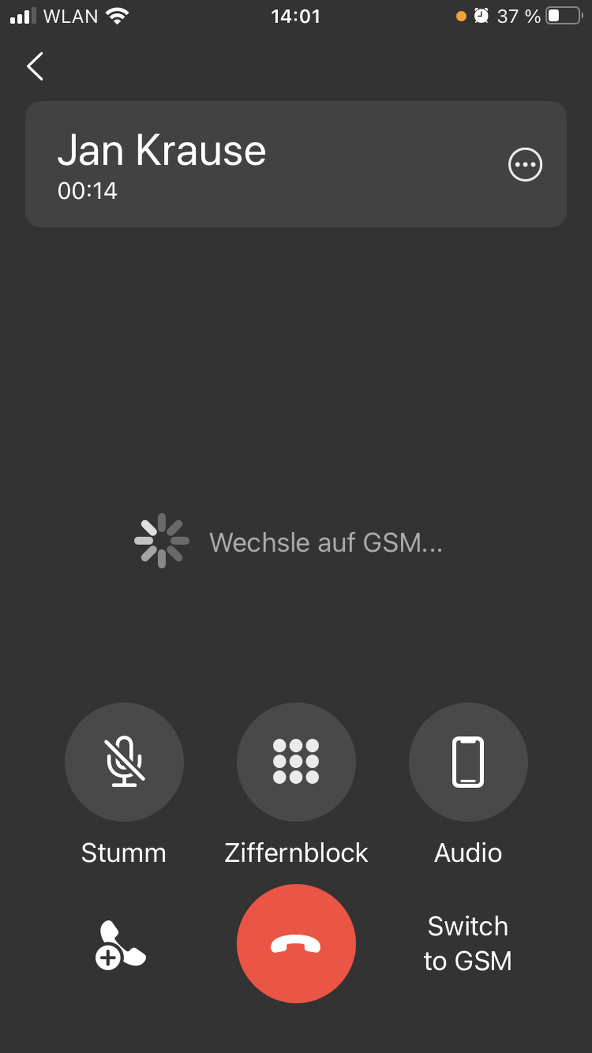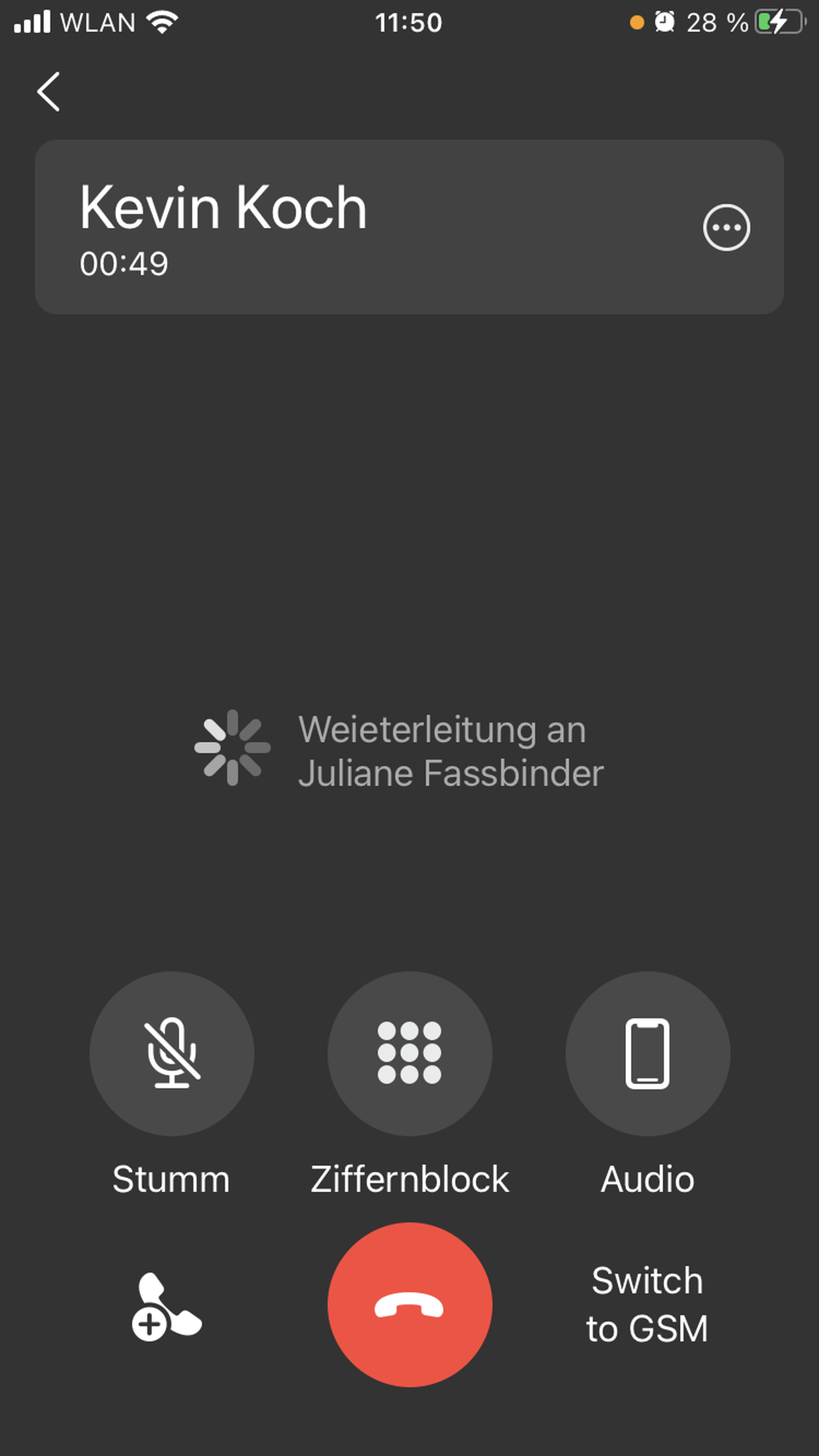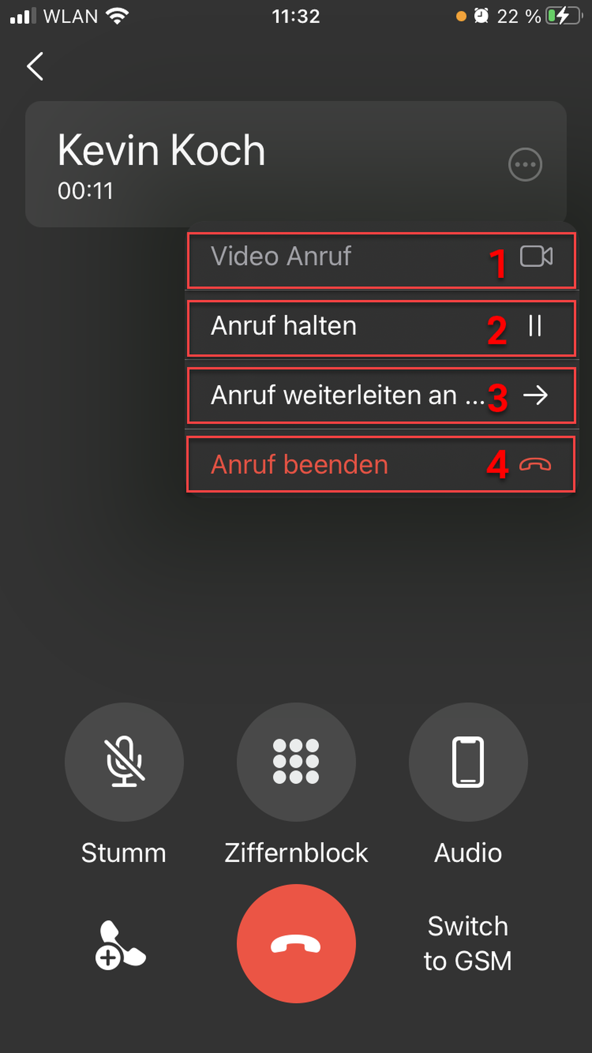 Bei einem 1:1-Audioanruf haben Sie auch die Möglichkeit, zu einem Videoanruf zu wechseln.