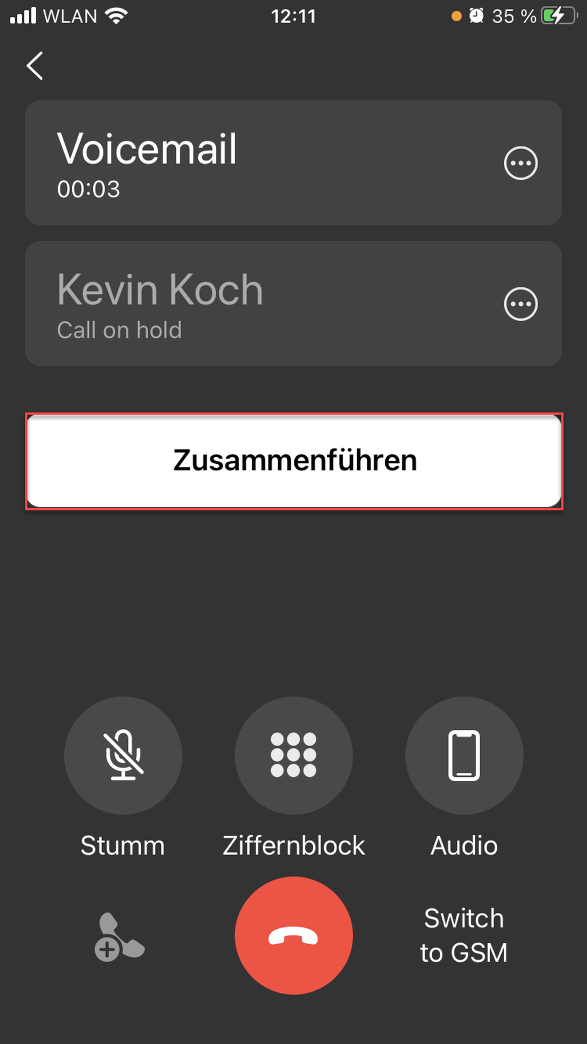 Einen neuen Anruf tätigen (die Konferenz wird auf Halten gesetzt und Sie können einen weiteren Anruf tätigen)