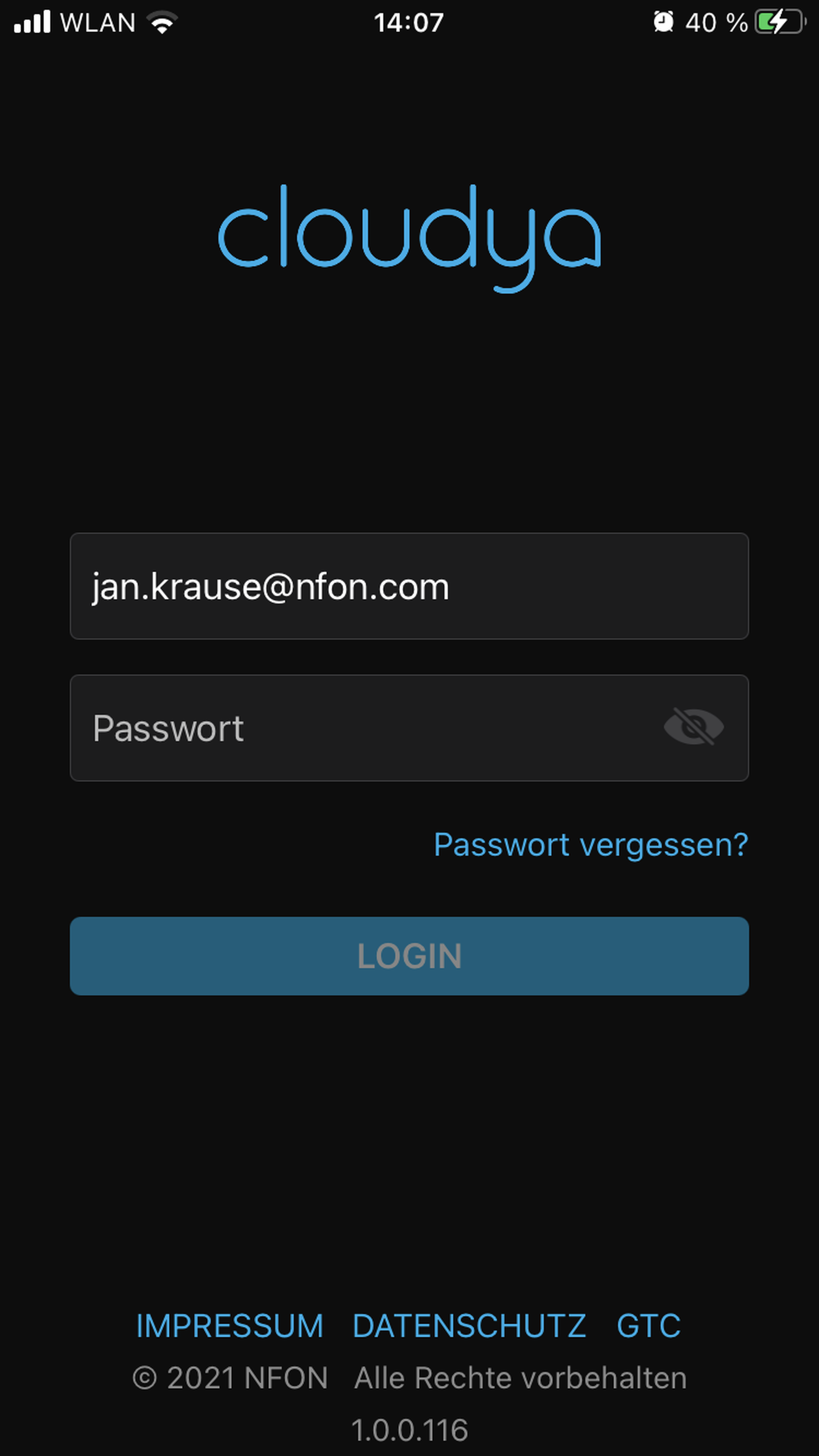 Um die App zu nutzen, müssen Sie sich mit Ihrem Phone Up Benutzernamen und Passwort anmelden. Dies sind dieselben Zugangsdaten, die Sie auch auf start.phoneup.de verwenden würden.