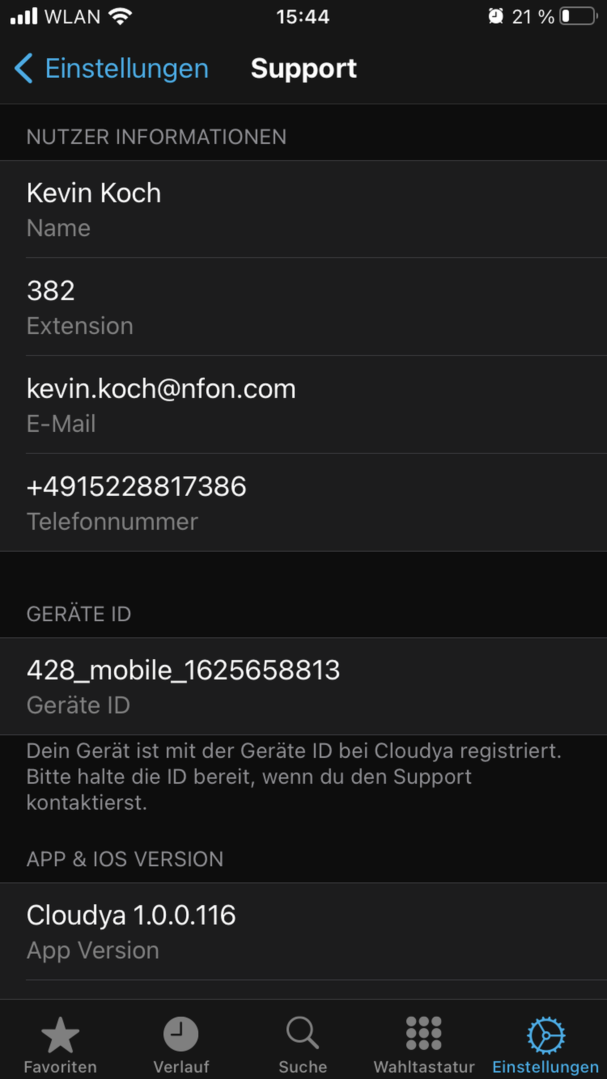 In dieser Ansicht finden Sie alle notwendigen Informationen, sollten Sie unseren Support kontaktieren müssen.