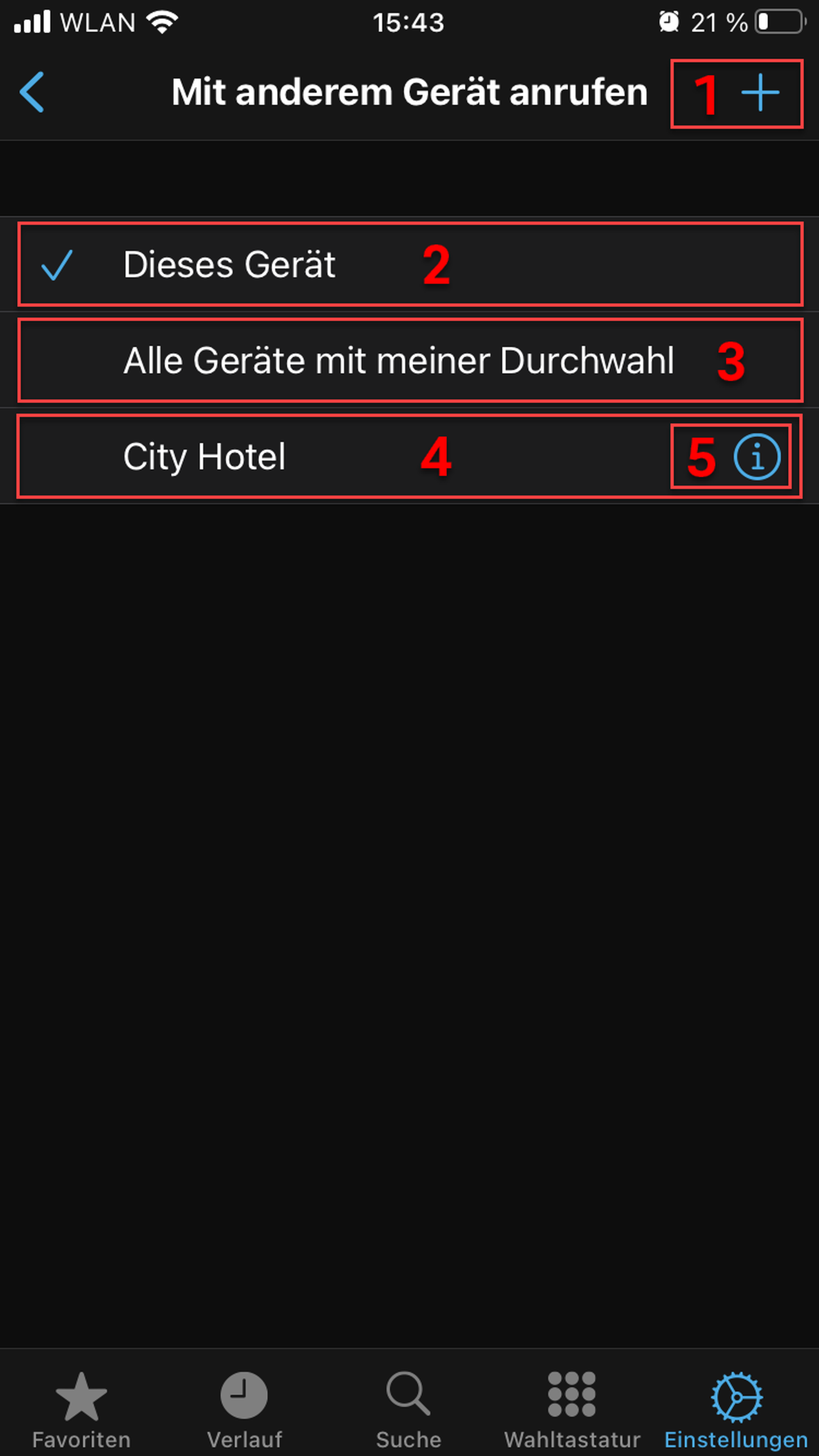 Optionen bei Mit anderem Gerät anrufen verwalten