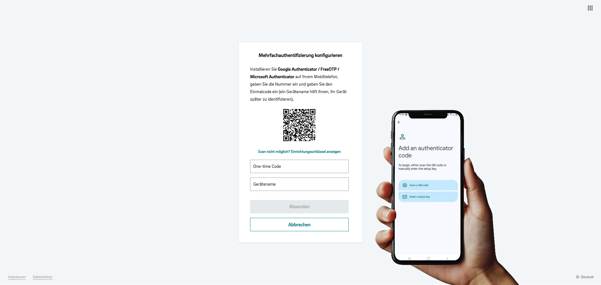 ⇒ Die Einrichtung des mobilen Authentifikators wird geöffnet.Öffnen Sie Ihre Authentifizierungs-App.