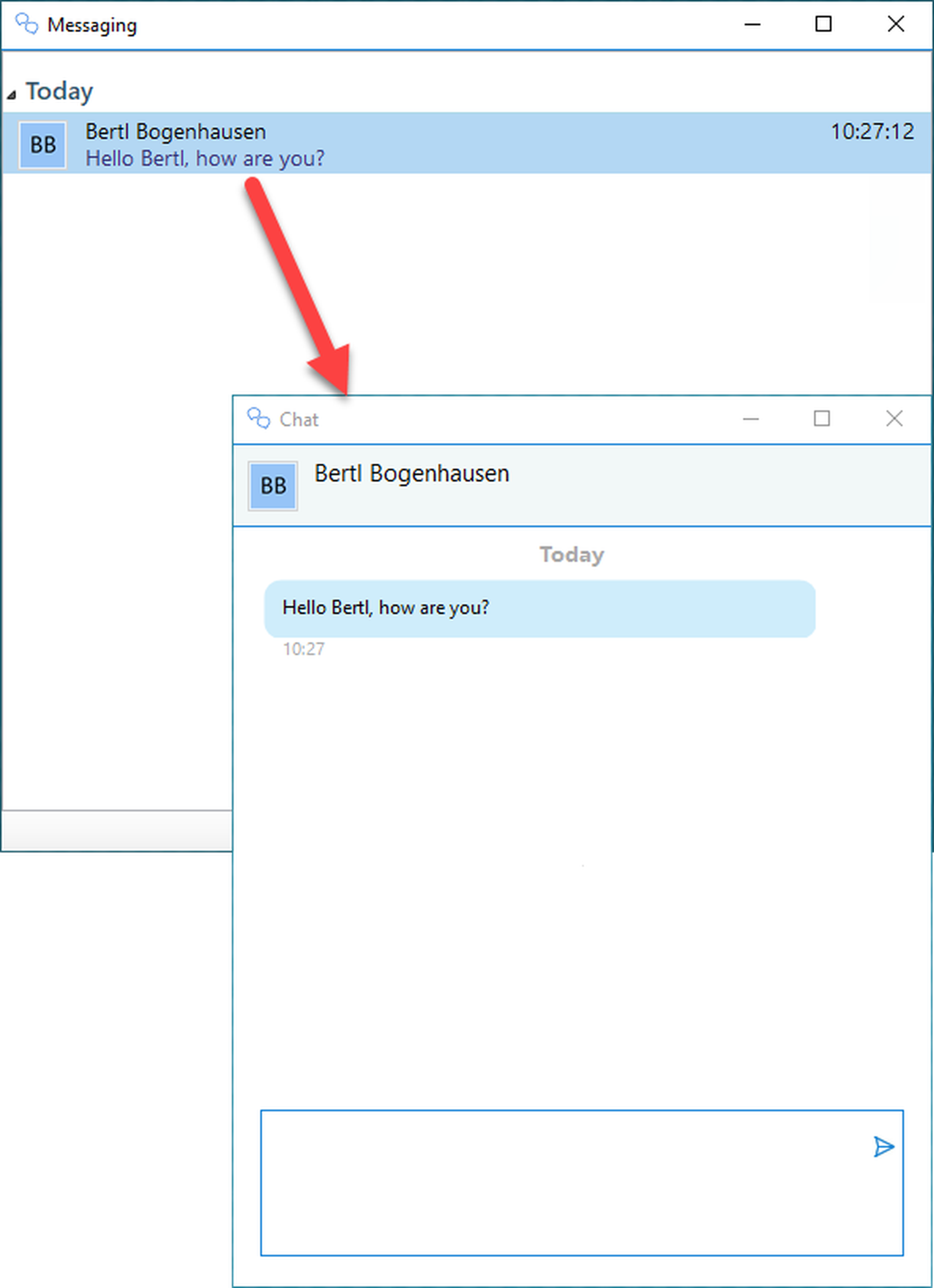Eine eingehende Chatnachricht wird Ihnen in Form eines Screenpopup auf Ihrem Deskop signalisiert.