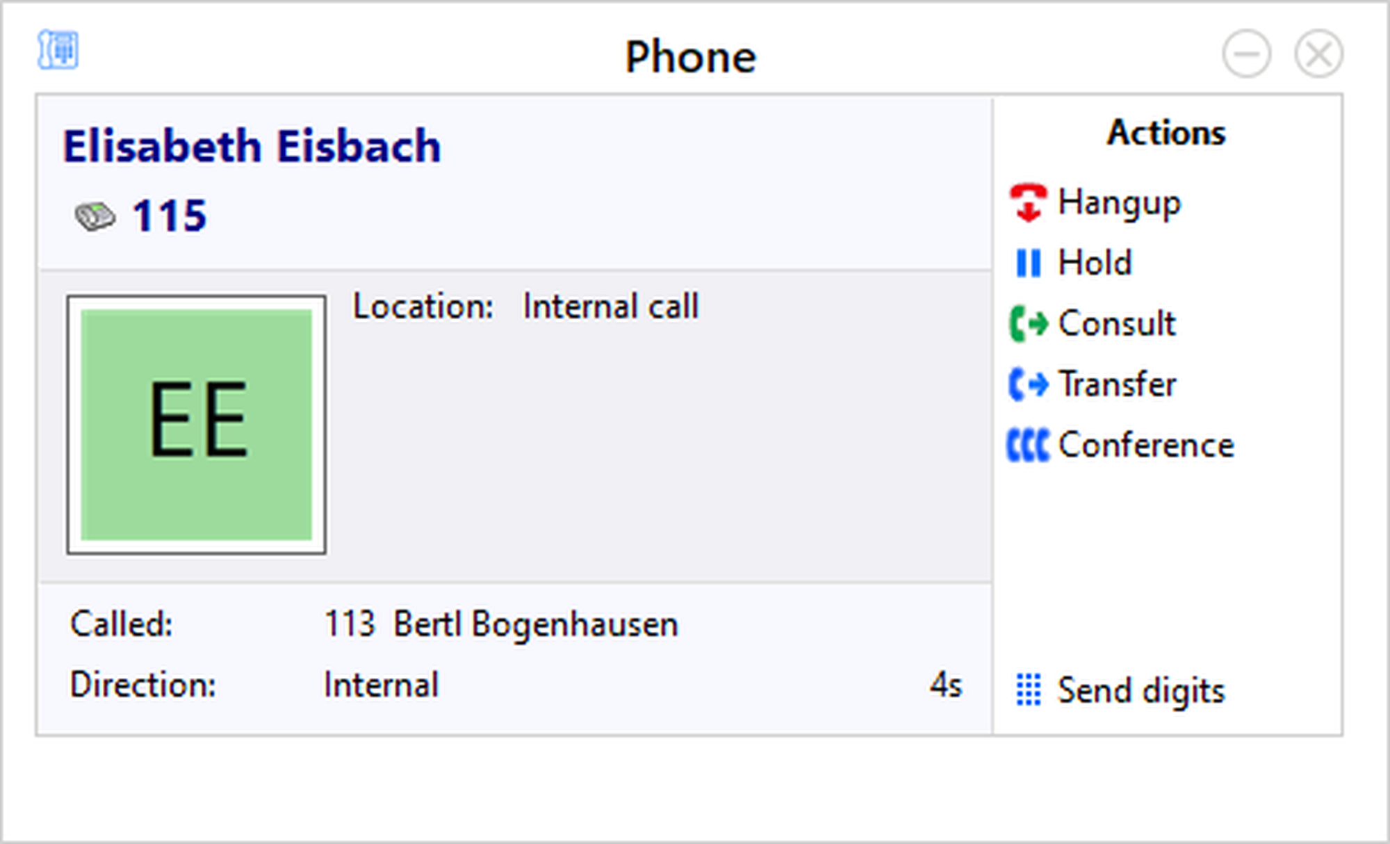 Wenn Sie den Kontakt des Anrufers bereits in Ihrem Outlook hinterlegt haben, wird Ihnen dieser nun in dem Screenpopup mit Name, Firma, Telefonnummer etc. angezeigt. Außerdem erscheinen die Kontaktdaten im Telefonfenster.