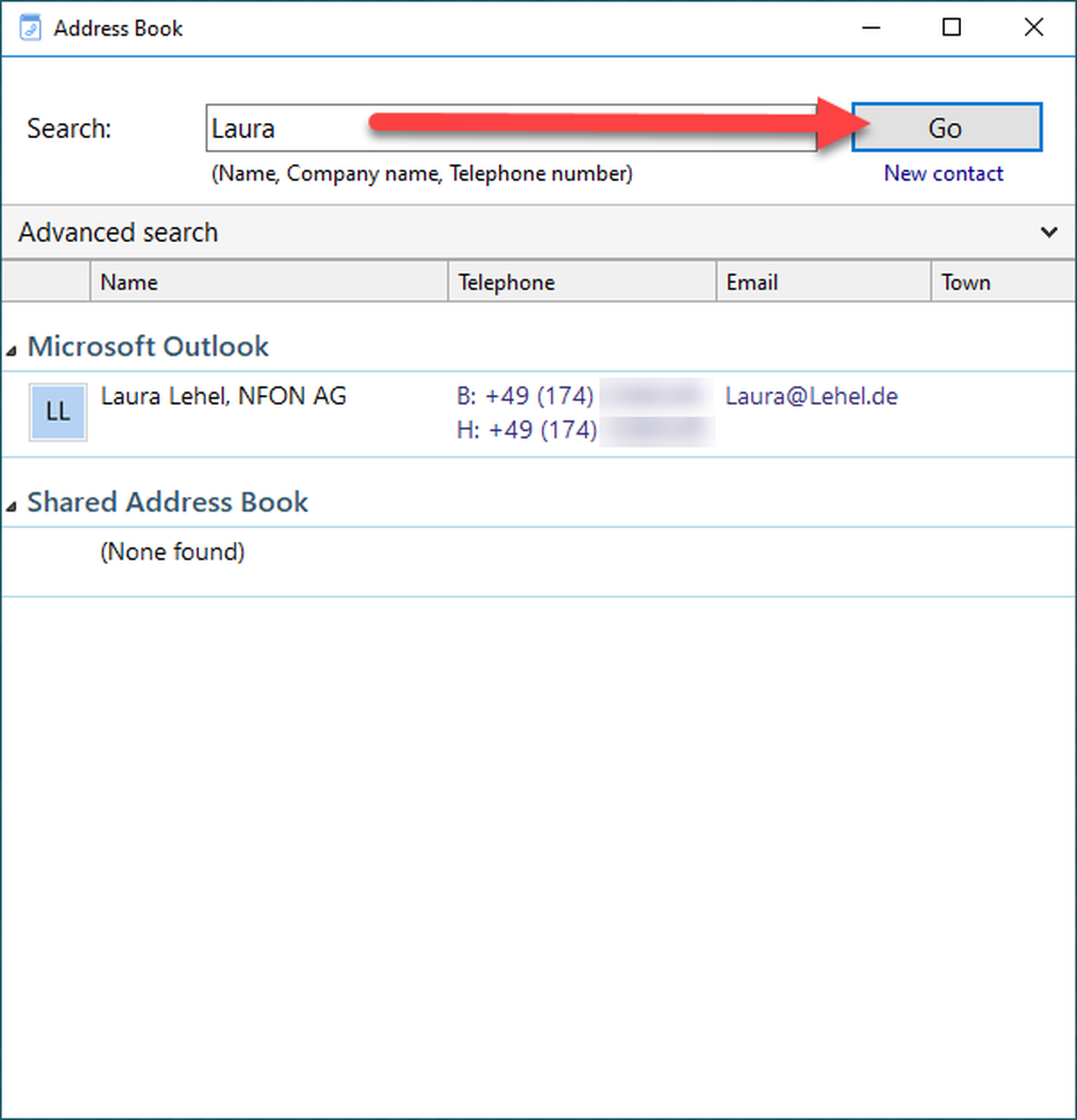 Sie haben außerdem die Möglichkeit Kontakte direkt aus dem Adressbuch heraus anzuwählen.