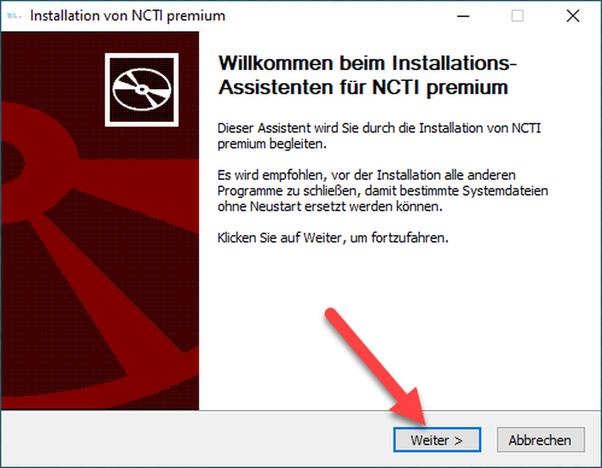Nachfolgend wird Ihnen hier die Installationsanleitung für den NCTI premium Client dargestellt.