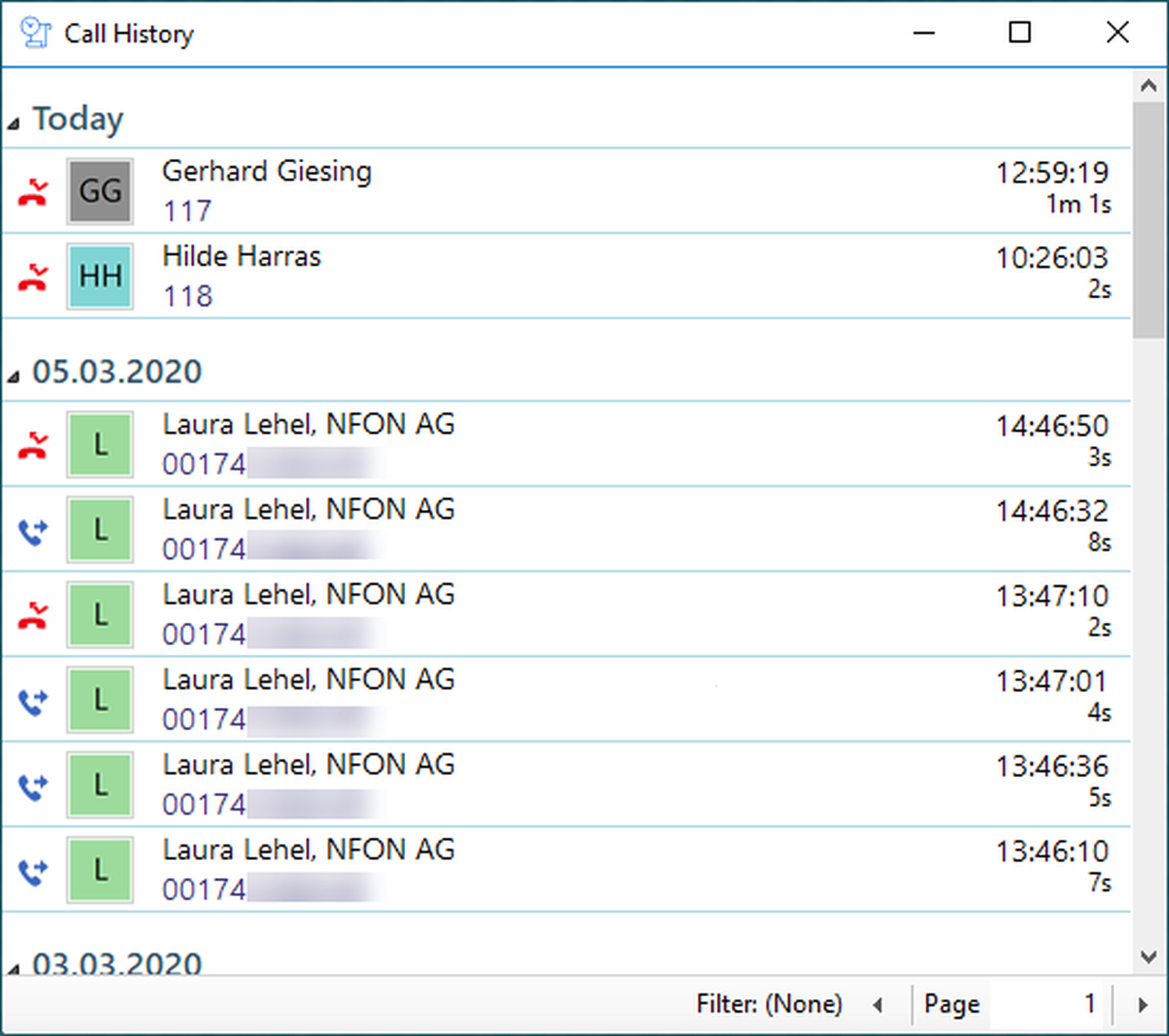 Hierfür klicken Sie unten in der Leiste der Anrufliste auf Filter.