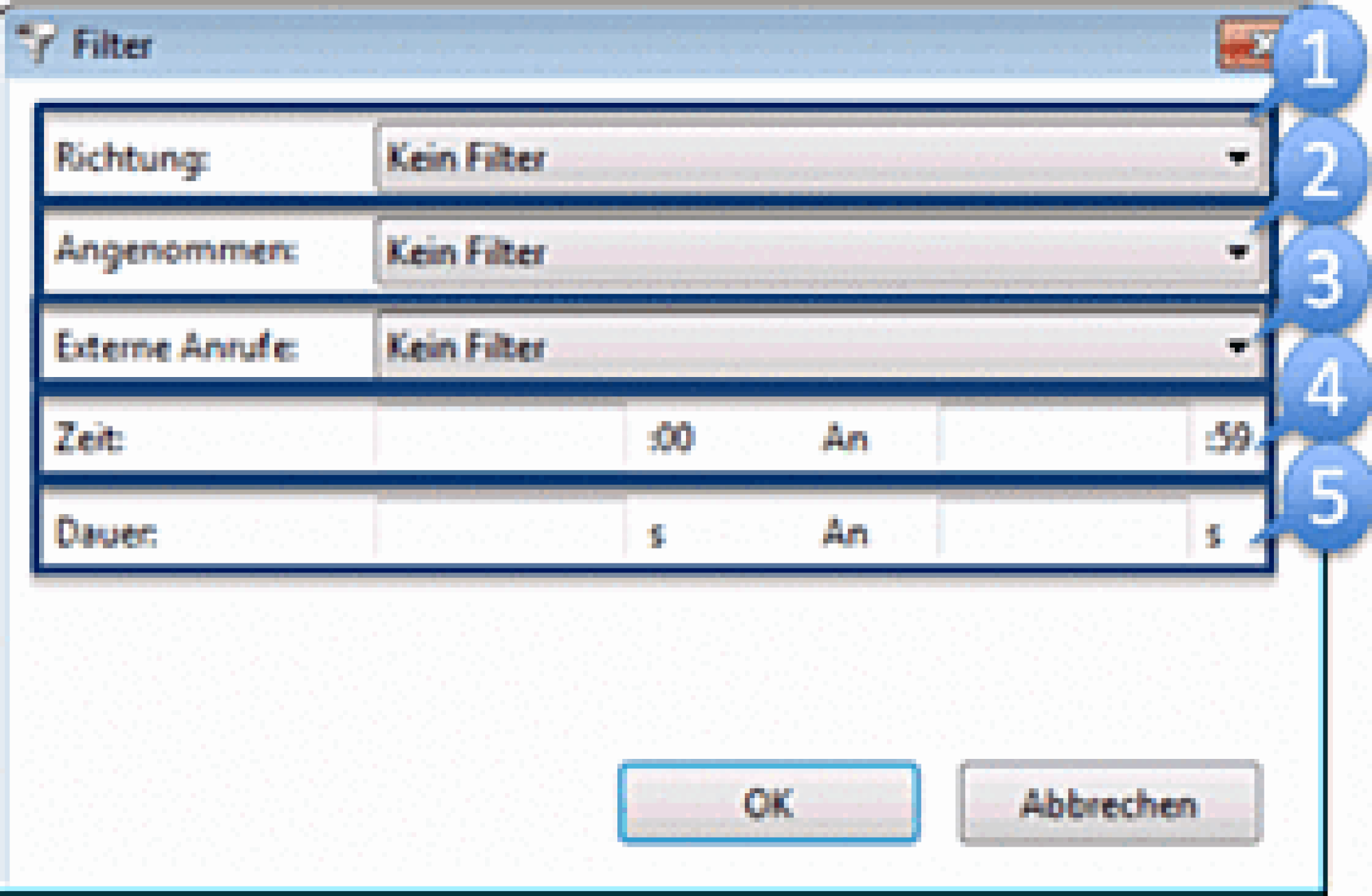 Sie haben außerdem die Möglichkeit, verschiedene Filter zu setzten, nach denen die Anrufe selektiert werden.