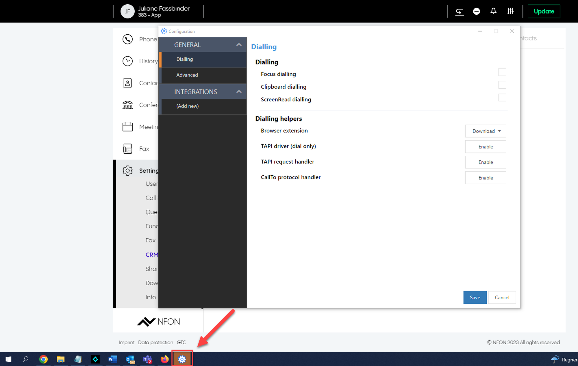 6. You have installed the PHONE UP add-in. In addition, you will get a notification about the PHONE UP button that has been pinned to your taskbar. If you don’t want the button to be pinned, click on Unpin Add-in in the bottom right-hand corner. You can still use the PHONE UP add-in via the options menu.