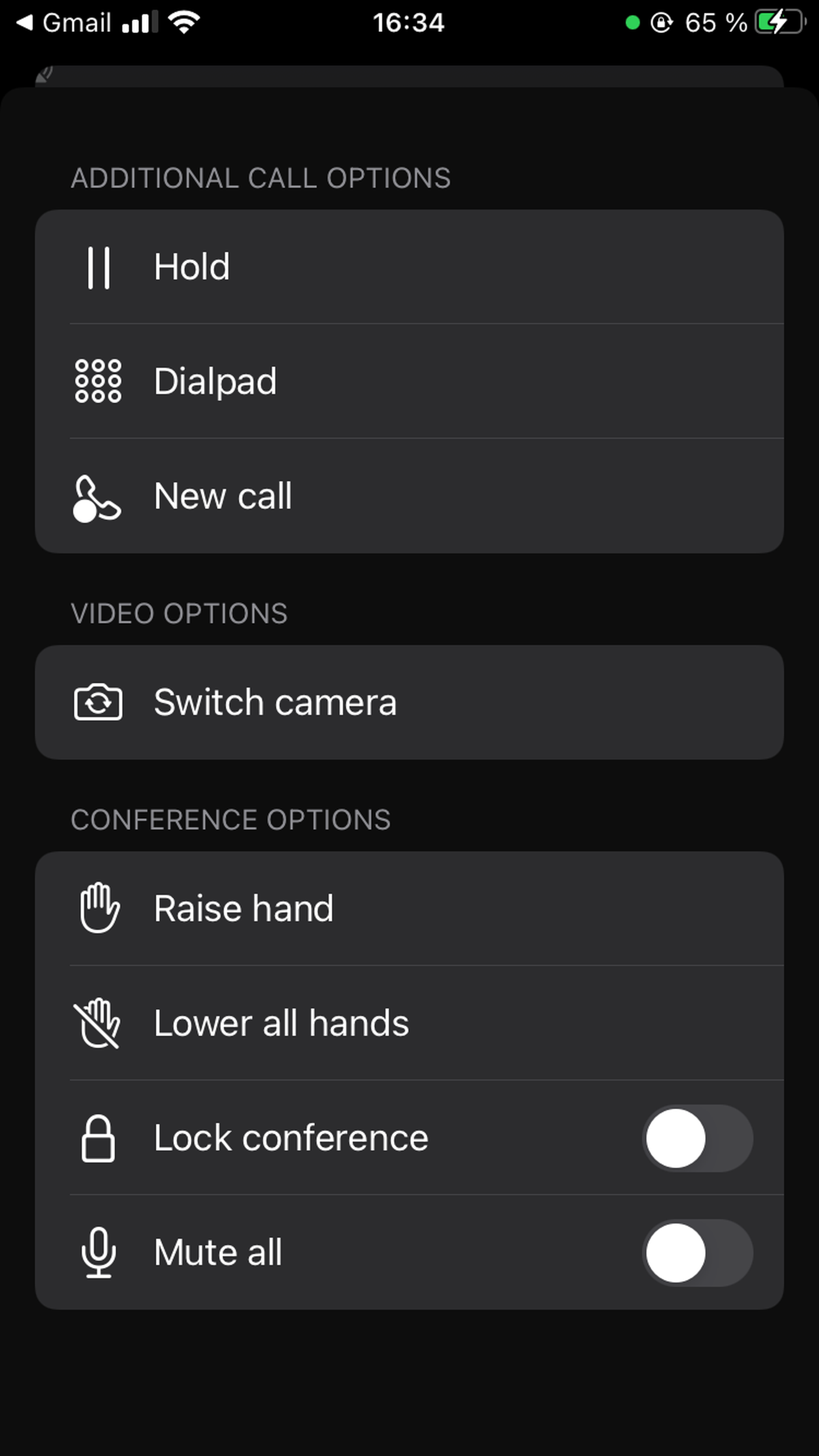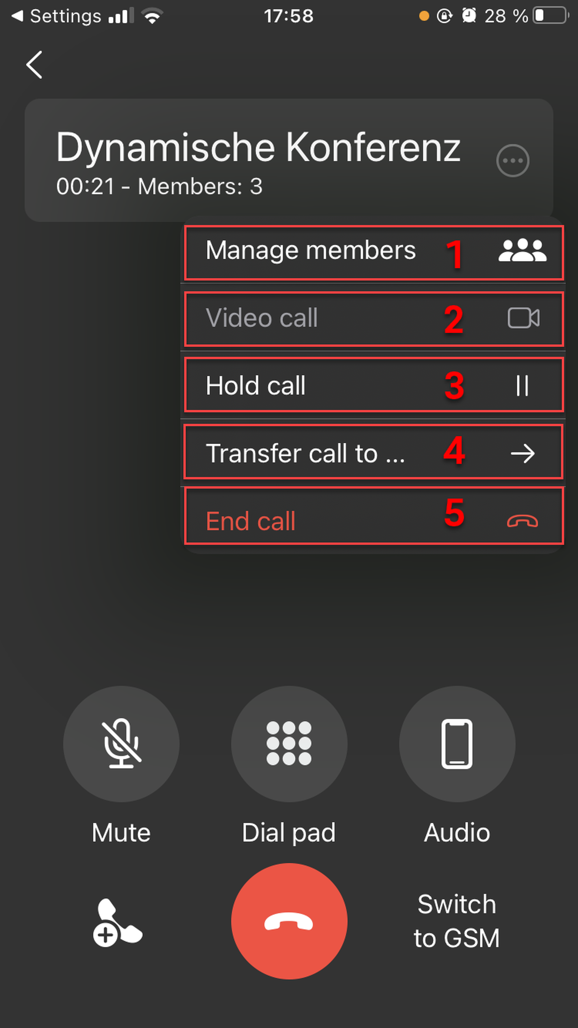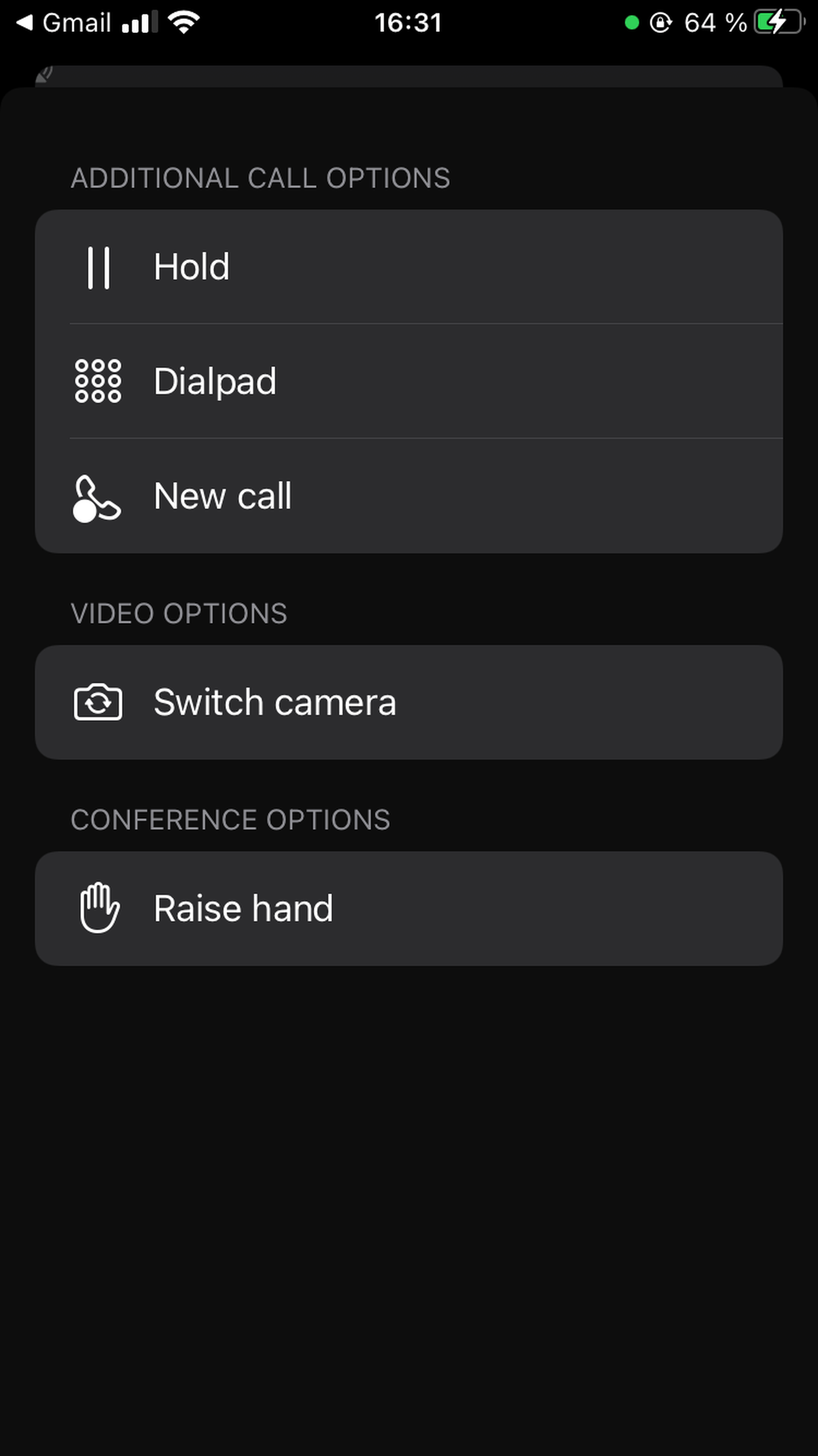 Tap on the three dots in the bottom right-hand corner to access call, video and conference options. In this menu, you can: