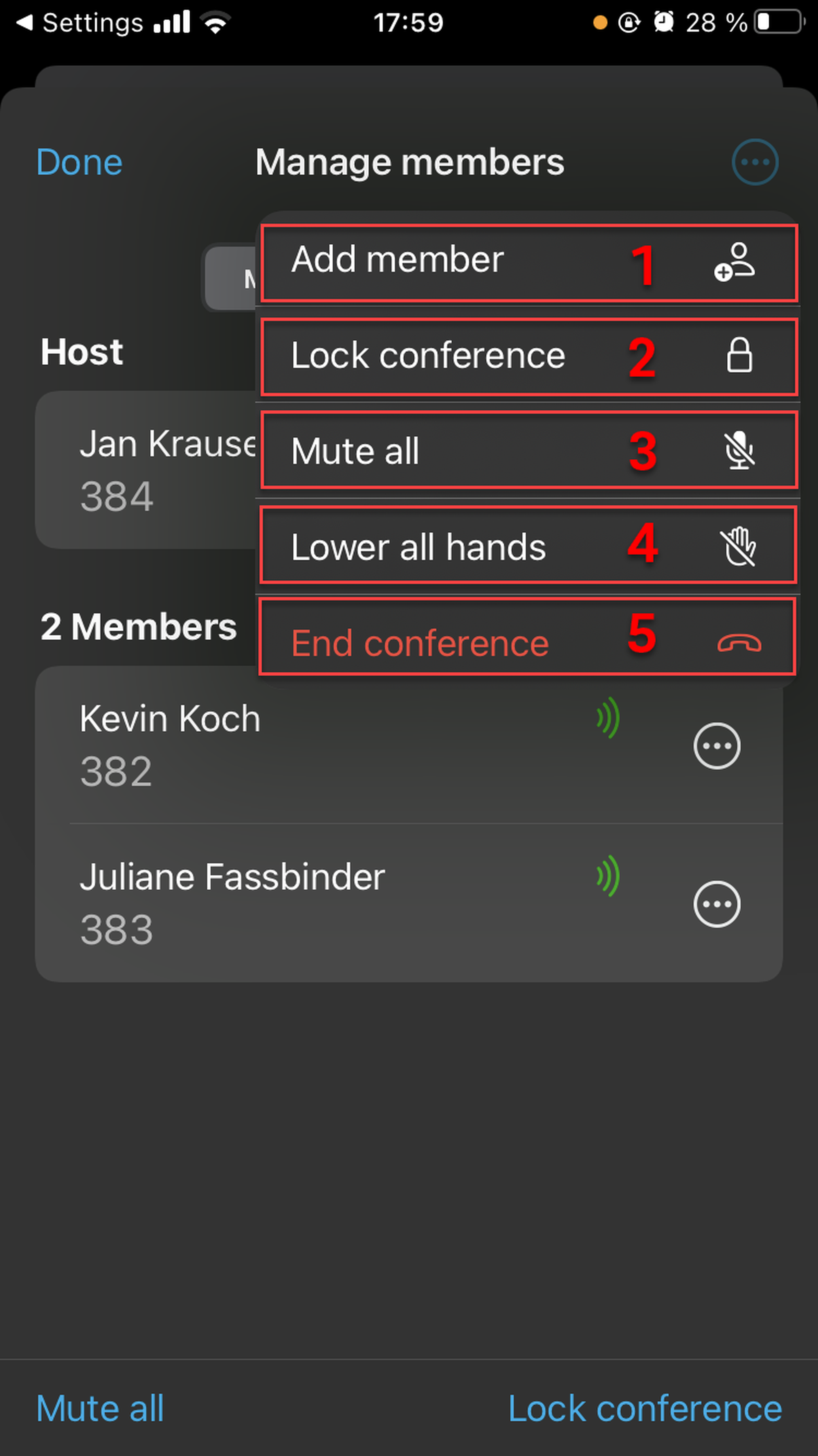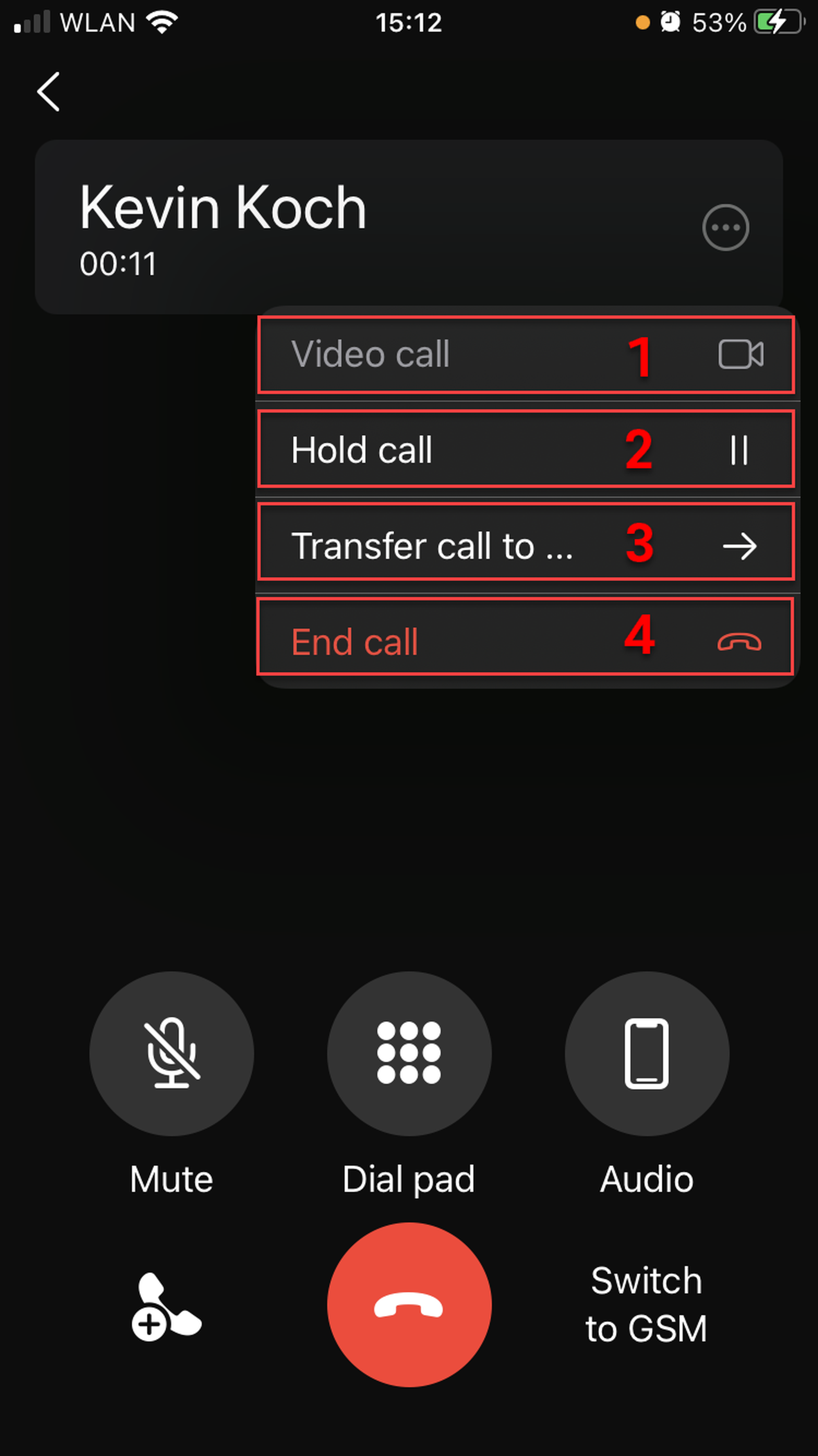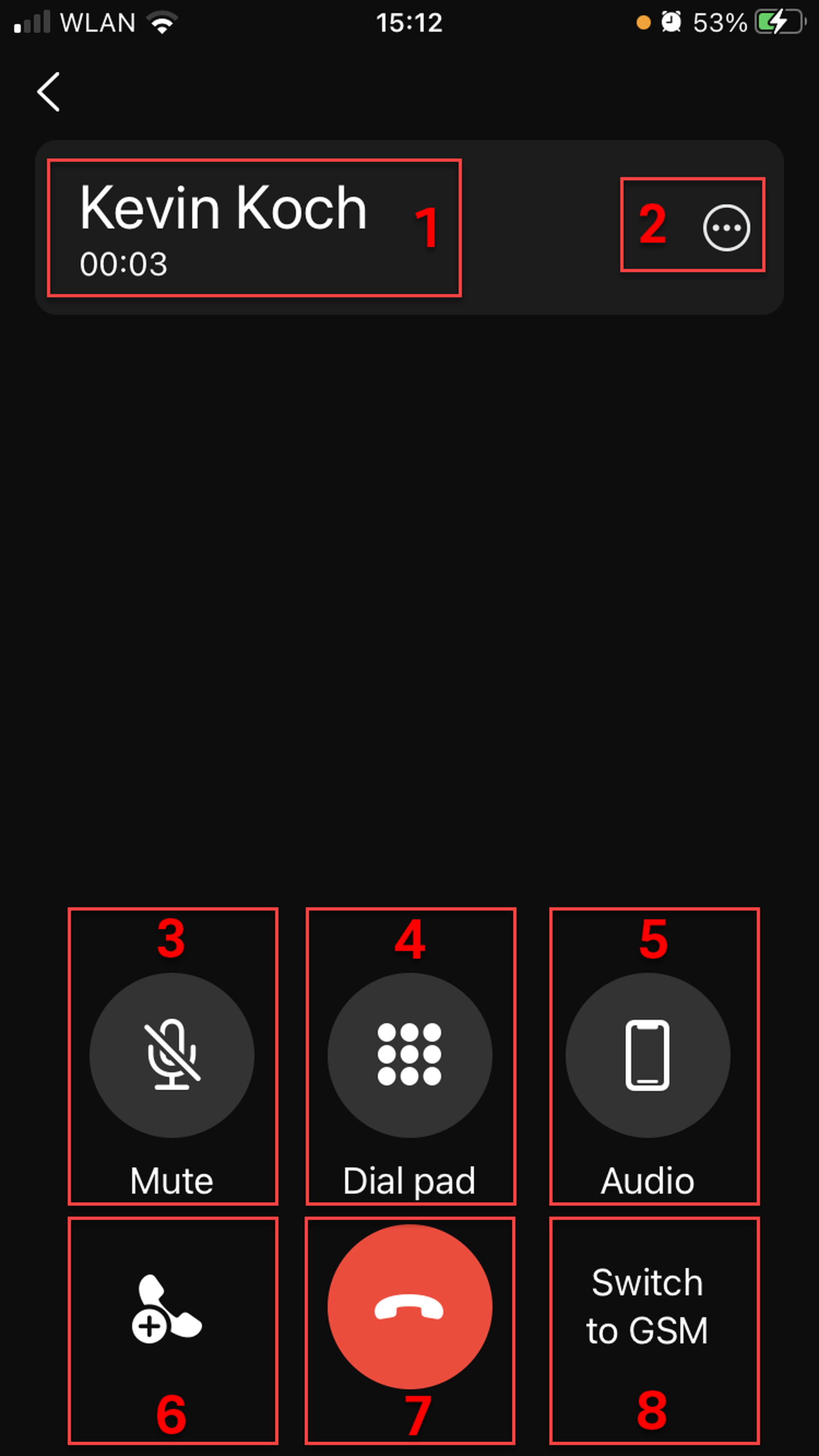 Tap on the three dots in the bottom right-hand corner to access call, video and conference options. In this menu, you can: