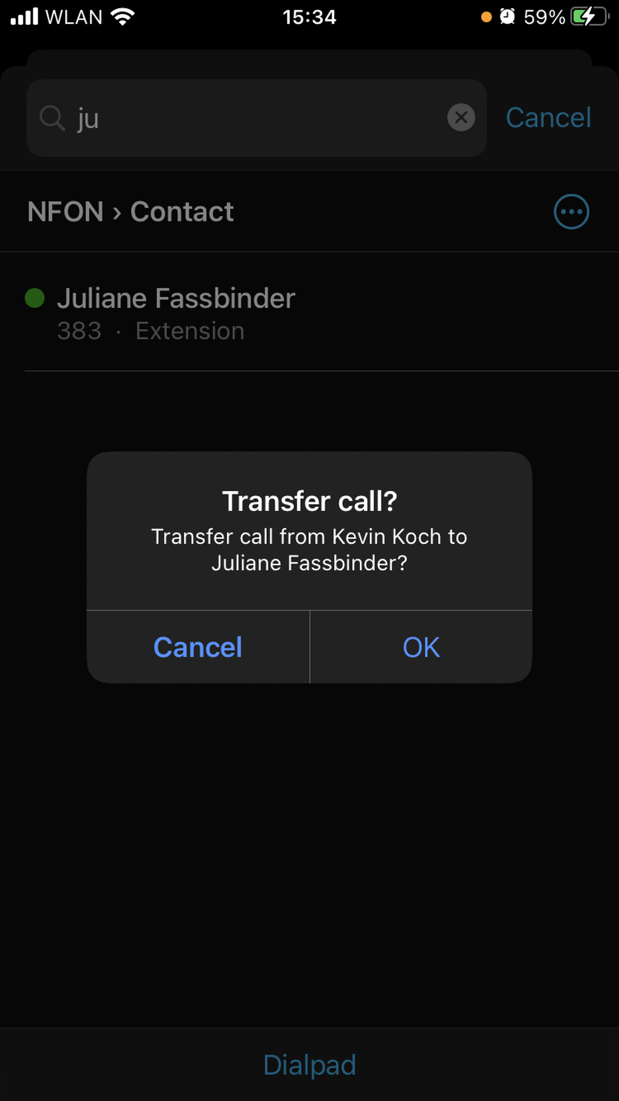 See that the call has been transferred. If you click on the arrow, you can see who the call was transferred by.