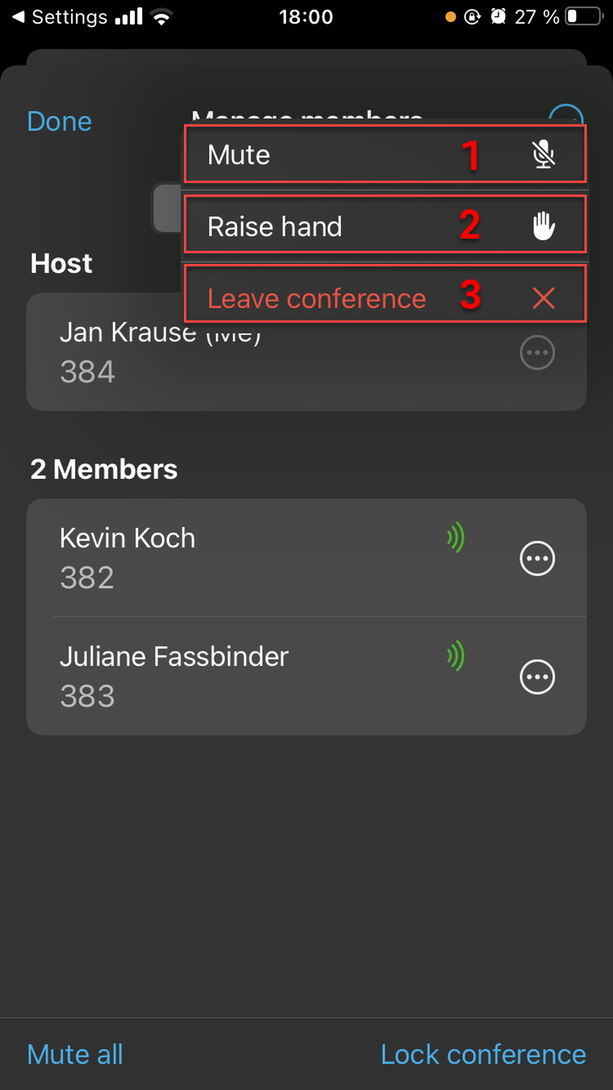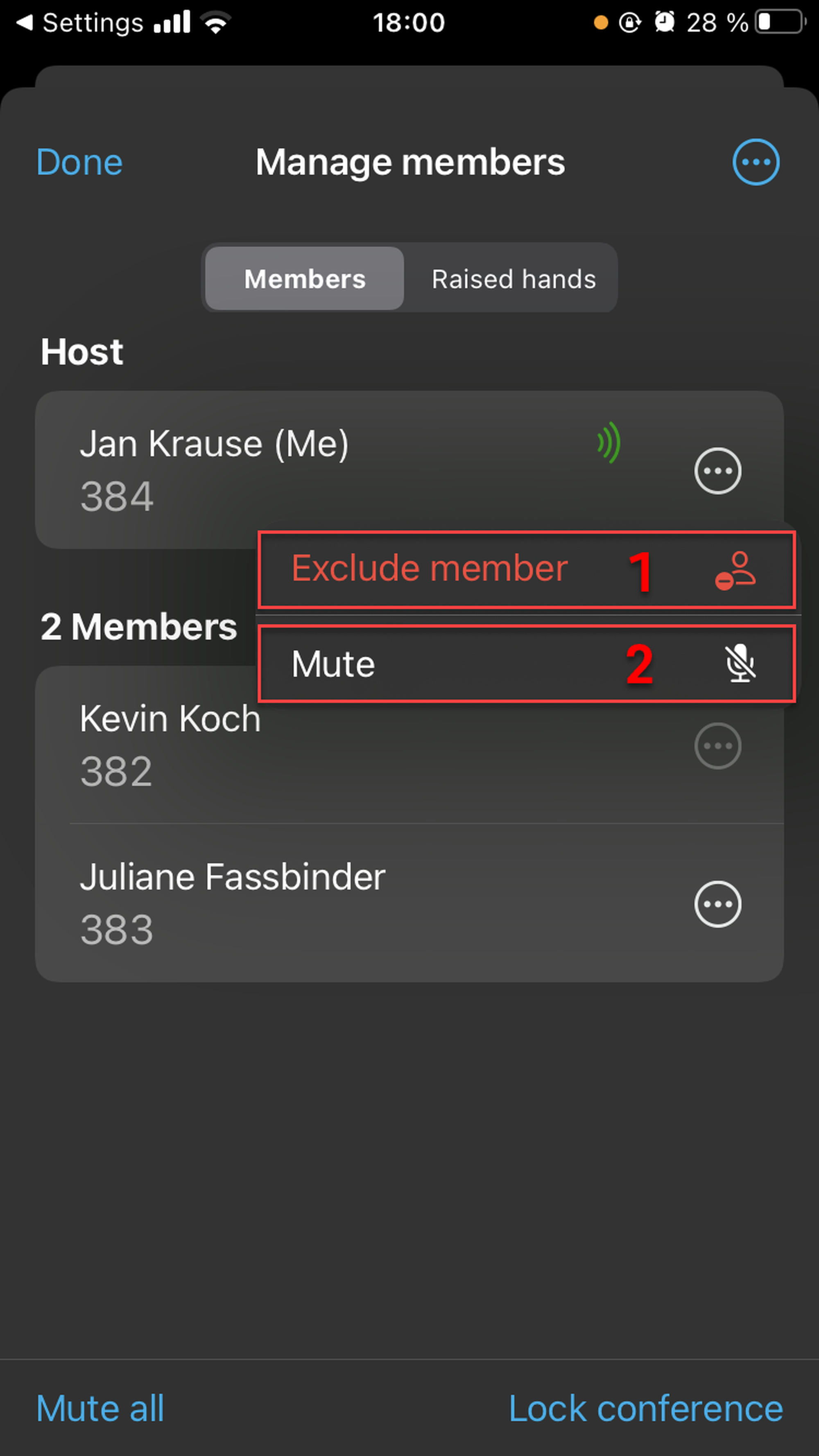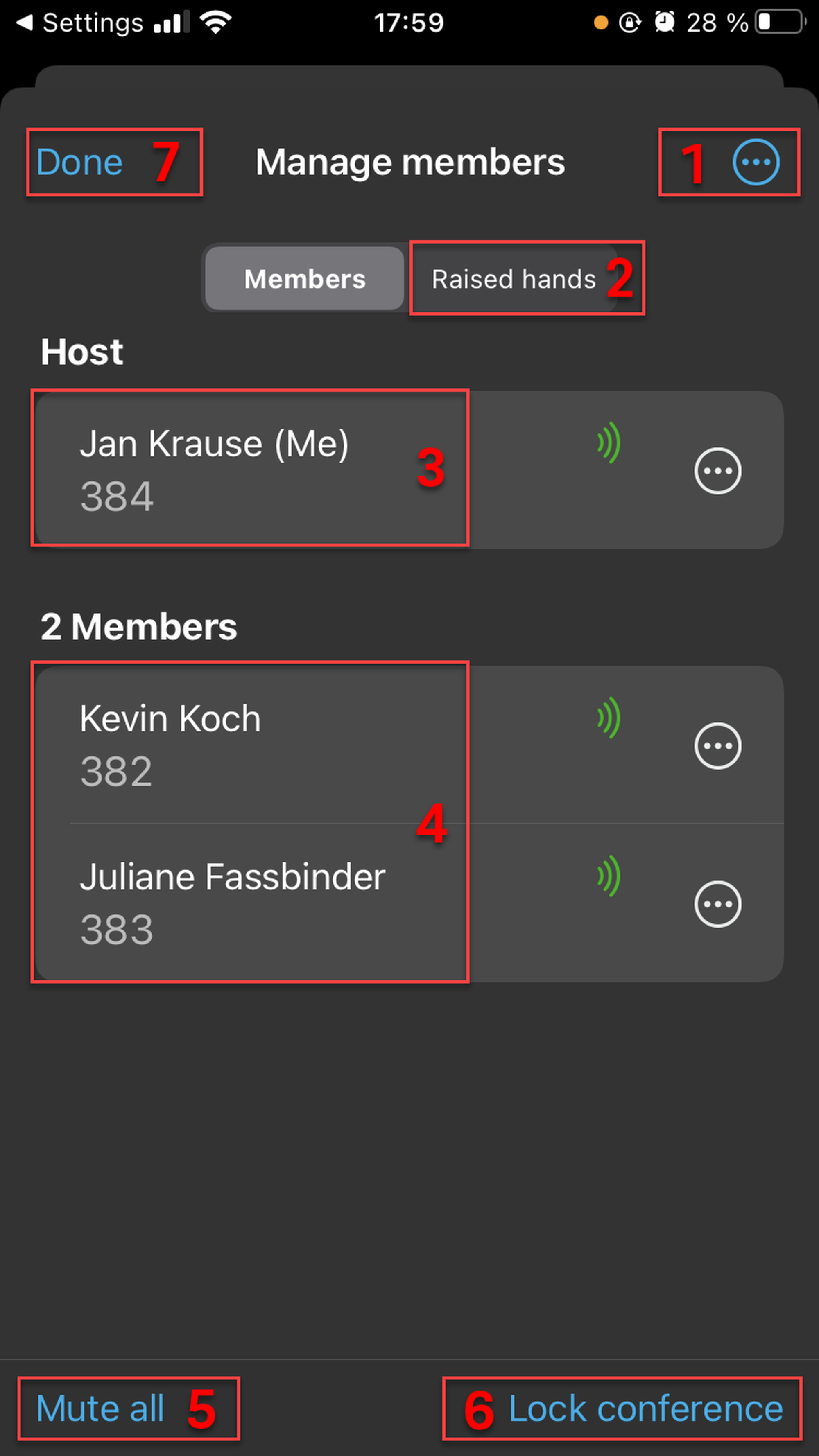 When in the audio mode, tap in the middle of the screen. You will see two tabs, Members and Raised hands.