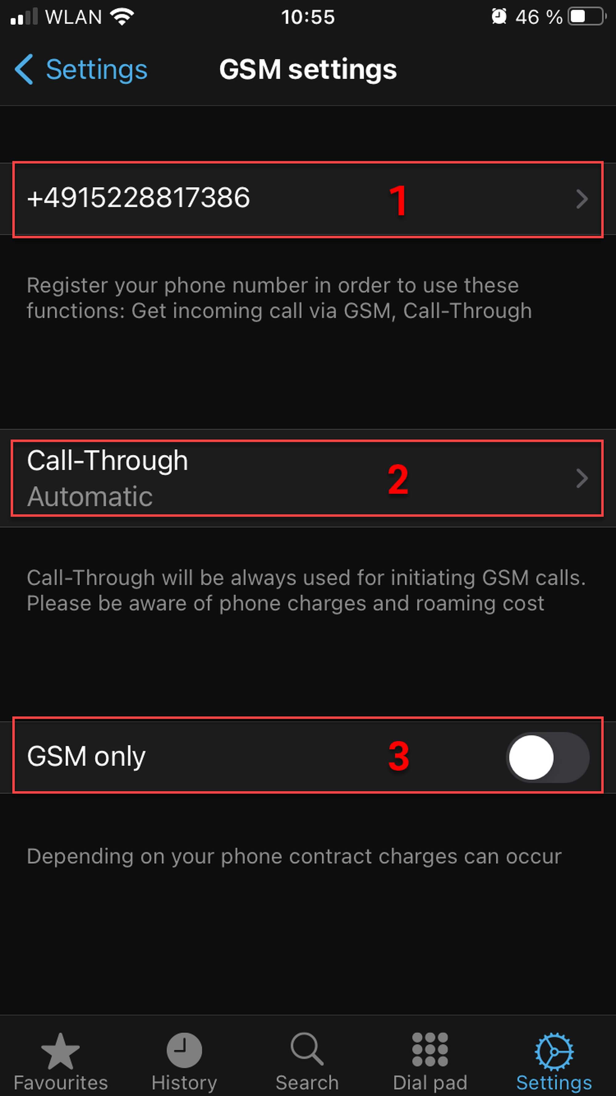 If you would like to receive calls via GSM, you can register your mobile phone number.