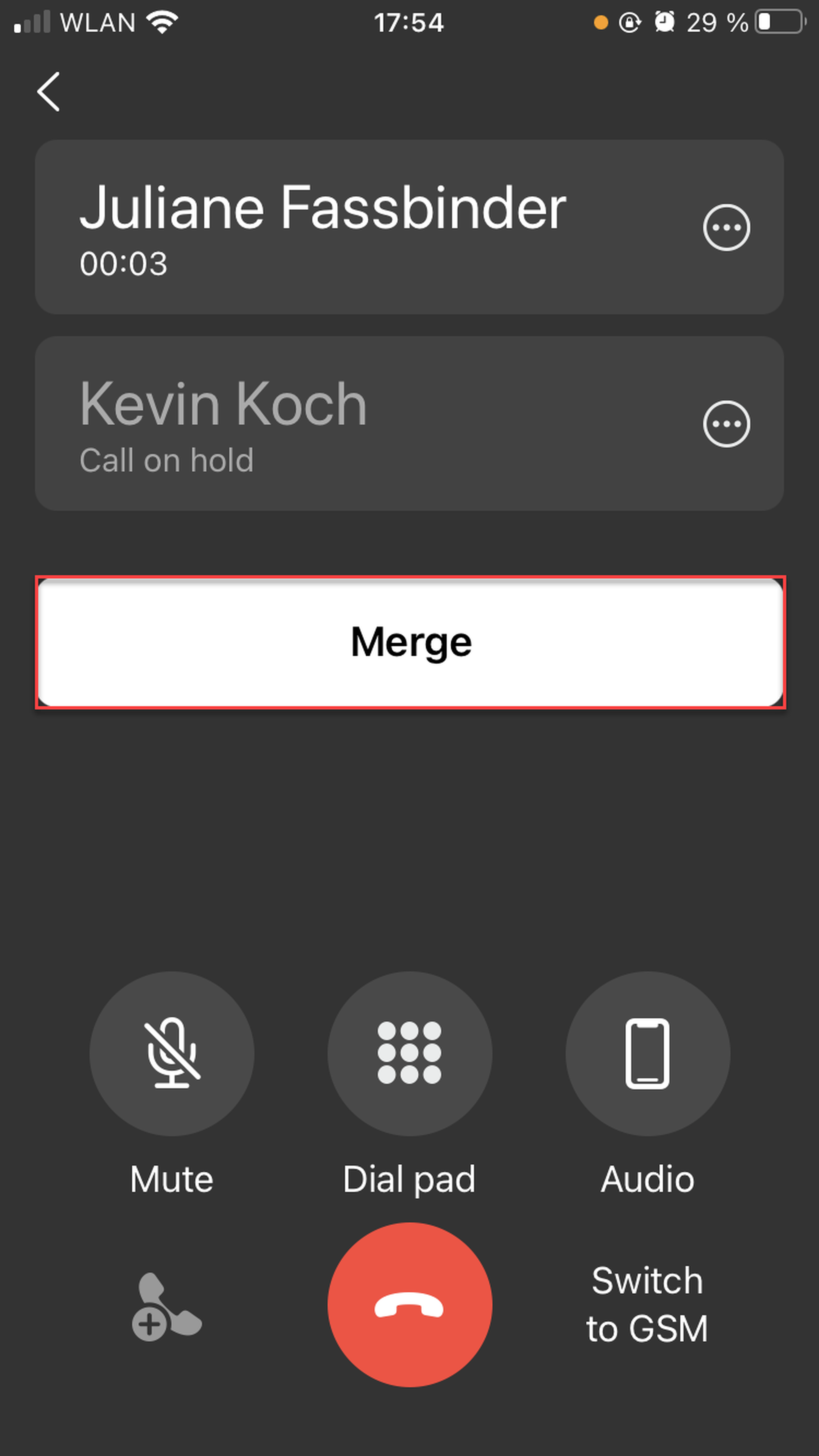 When in an ad-hoc audio conference, you can switch to a video conference (go to Chapter C.3 to see how to create an ad-hoc conference).