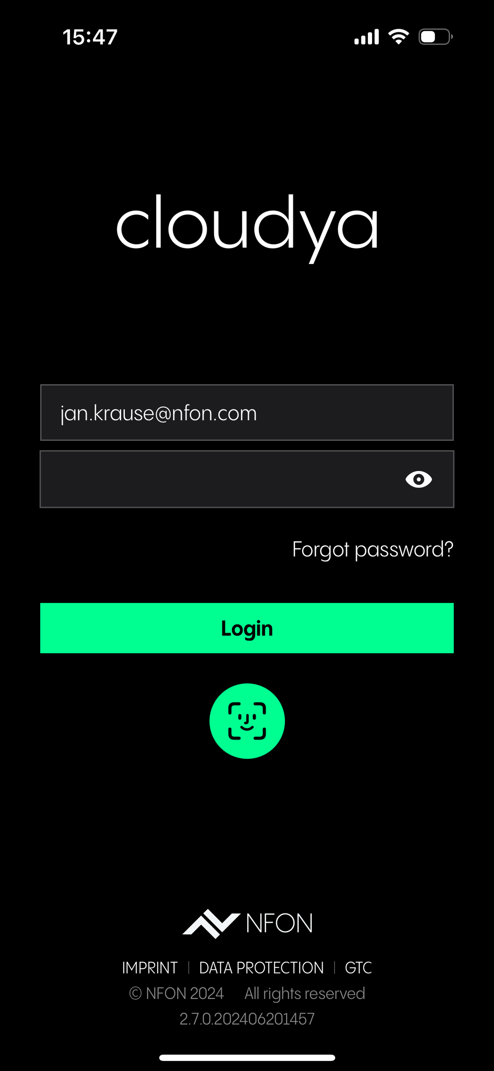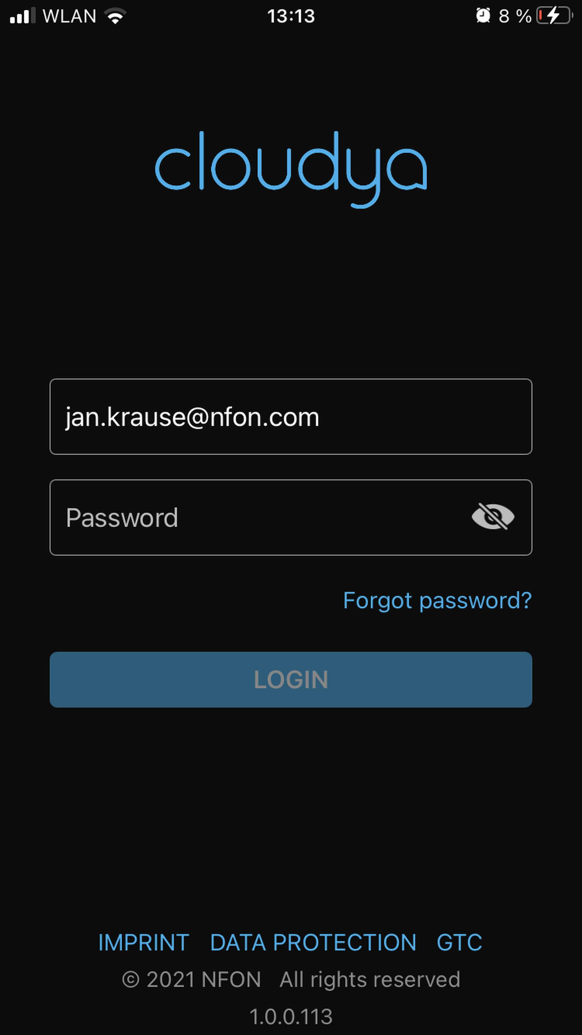 To use the app, you have to login with your Phone Up username and password. These are the same credentials you would use at start.phoneup.de.