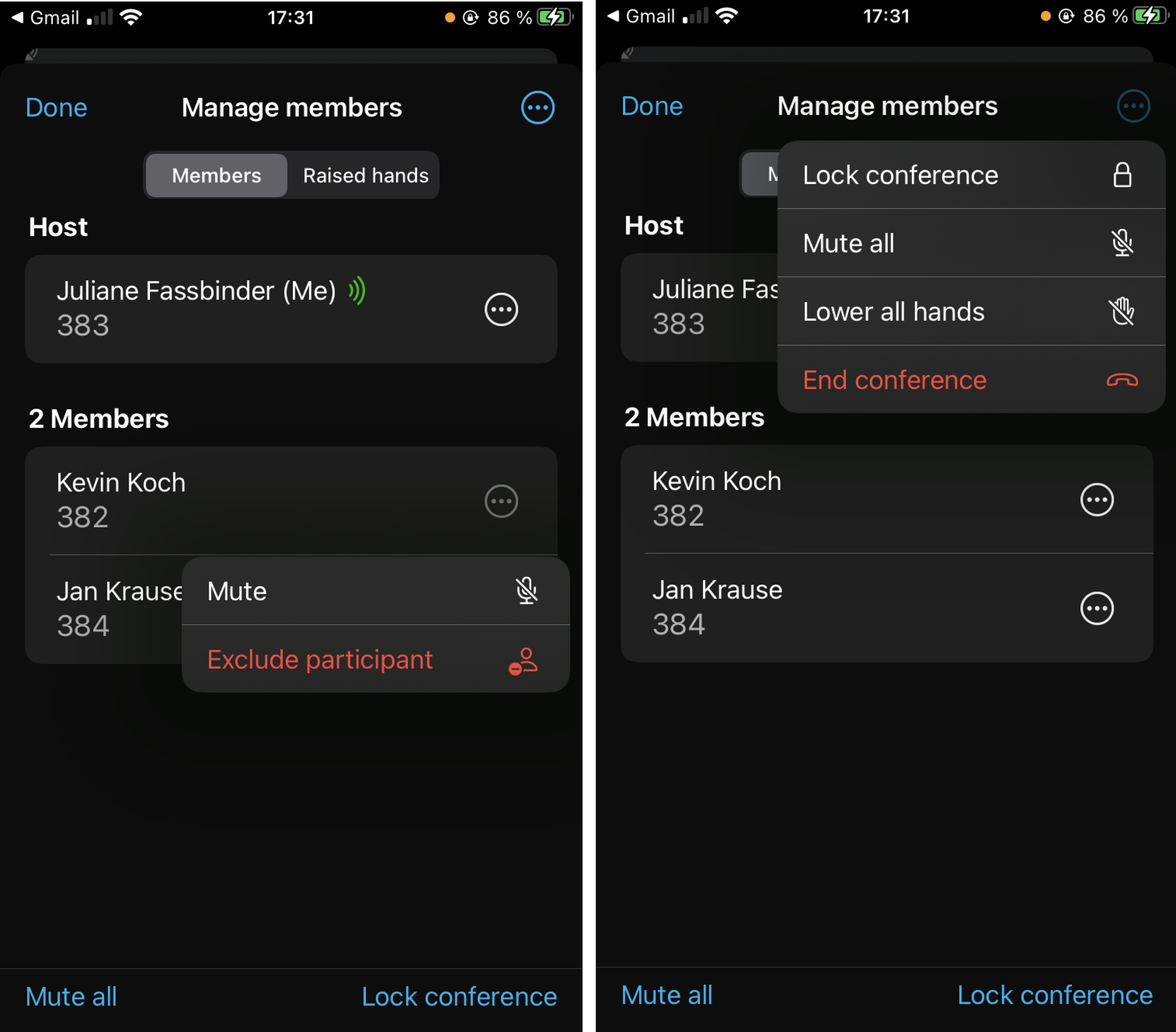 If there are more than 4 participants, swipe to the right or left to see other members of the conference.