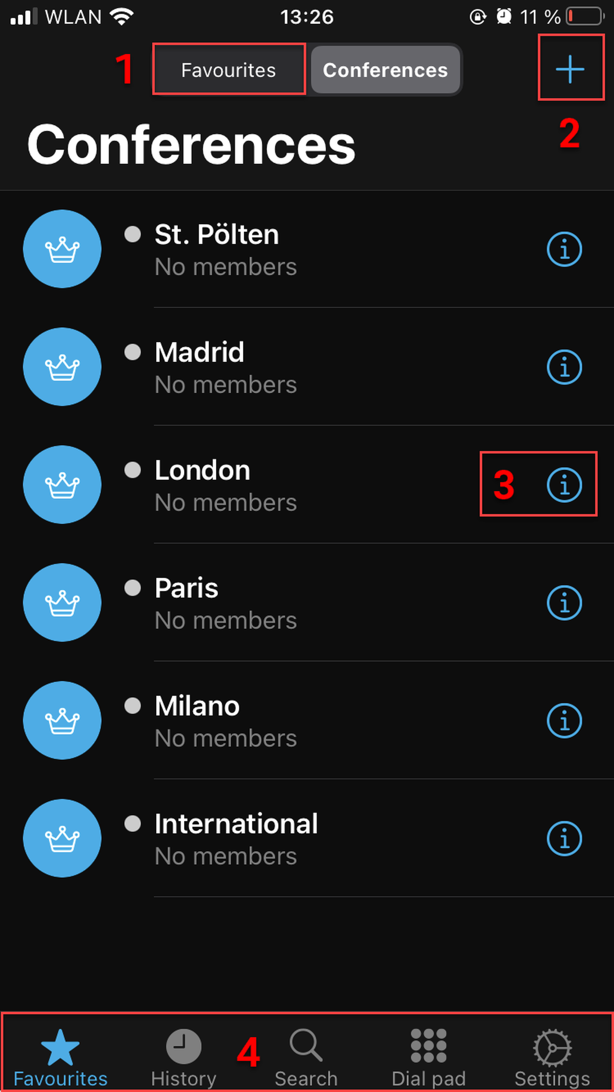 1. Tap on the plus symbol in the upper right-hand corner in the Conferences view.