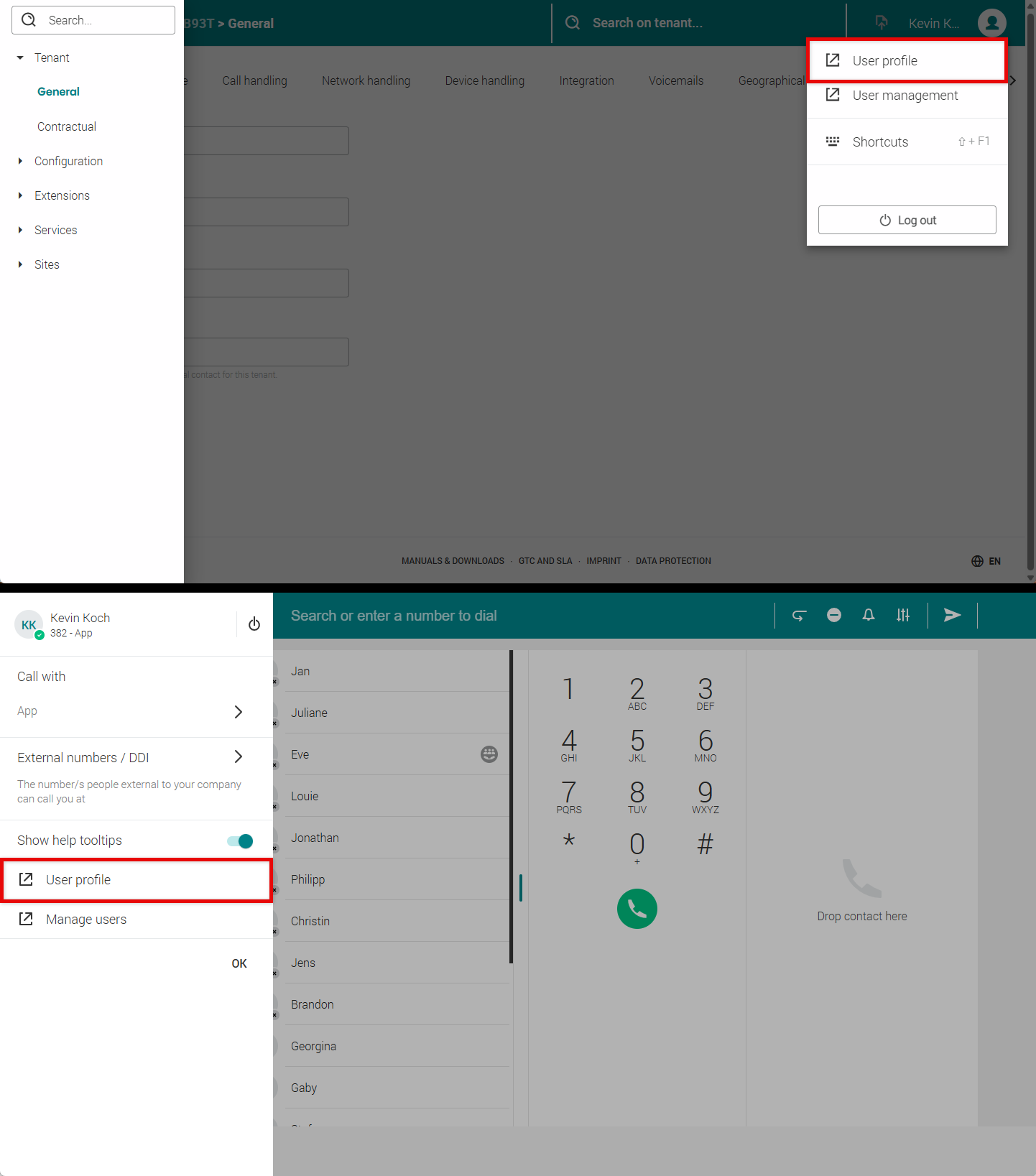 To access the User Profile application from the Web/Desktop App and Administration Portal 4: