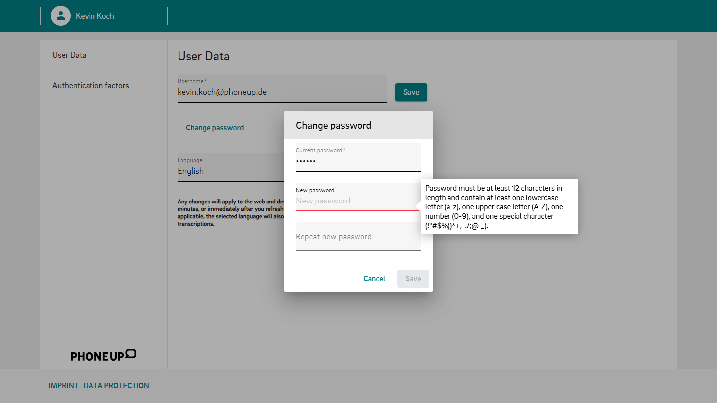 Once in the User Profile application, you will land in the User Data. in this tab, you can: