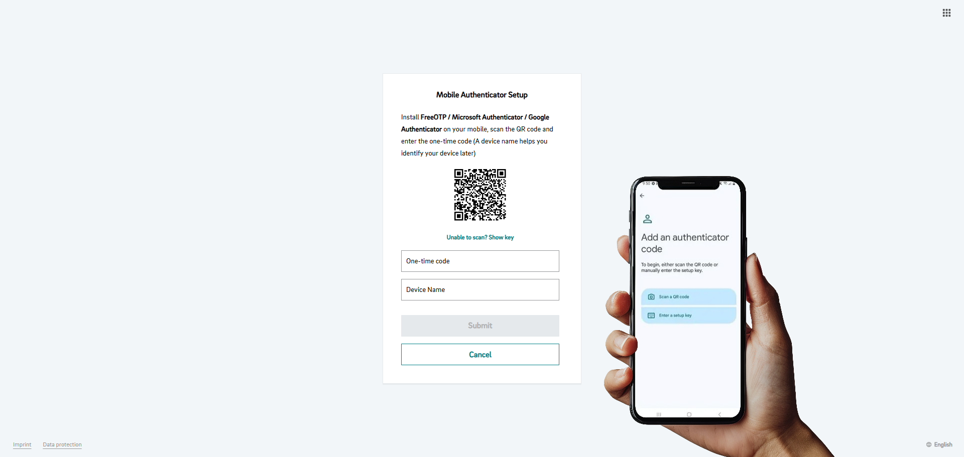⇒ The mobile authenticator setup will open.Open your authenticator app.