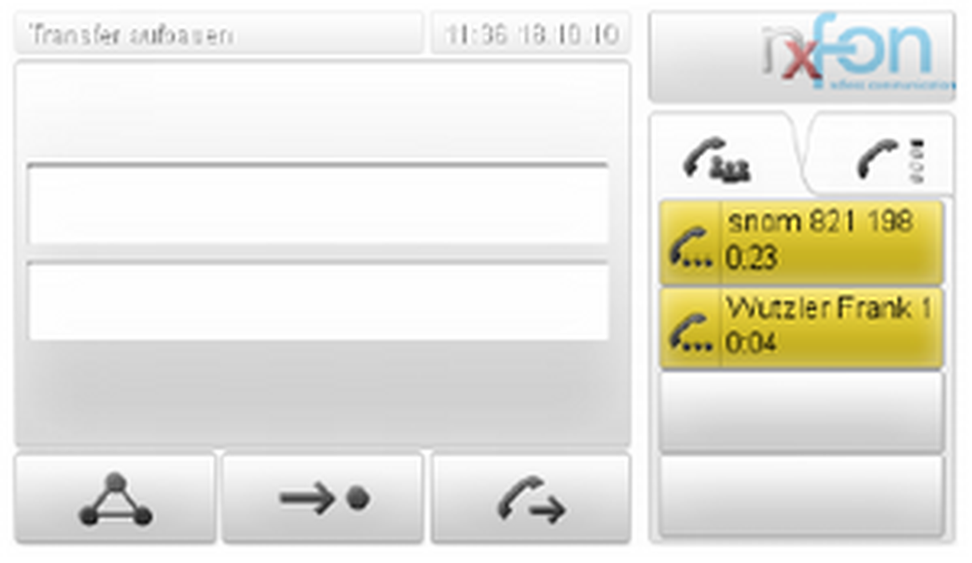 | • Home screen: List of incoming calls • Text fields: Move cursor to the left | Call transfer | ||