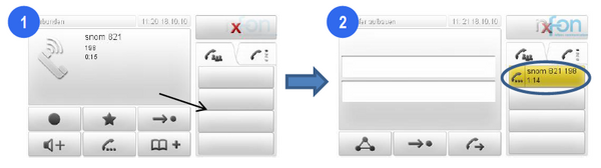 icon on the key in the information section indicates the line, on which the call is on hold.Press
