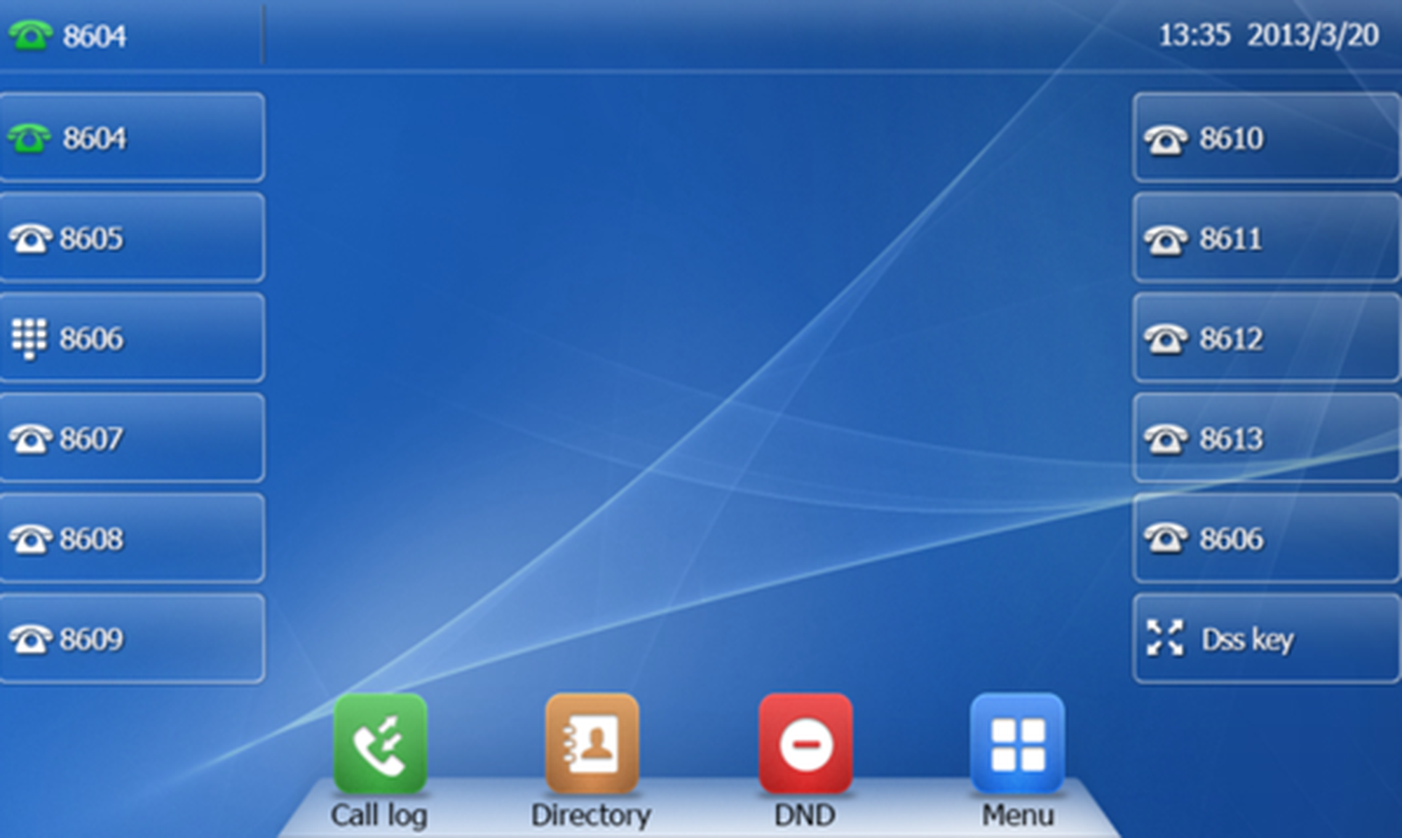 You can start a call by pressing the respective busy lamp key. If an internal extension is programmed, you can see whether that extension is currently busy: