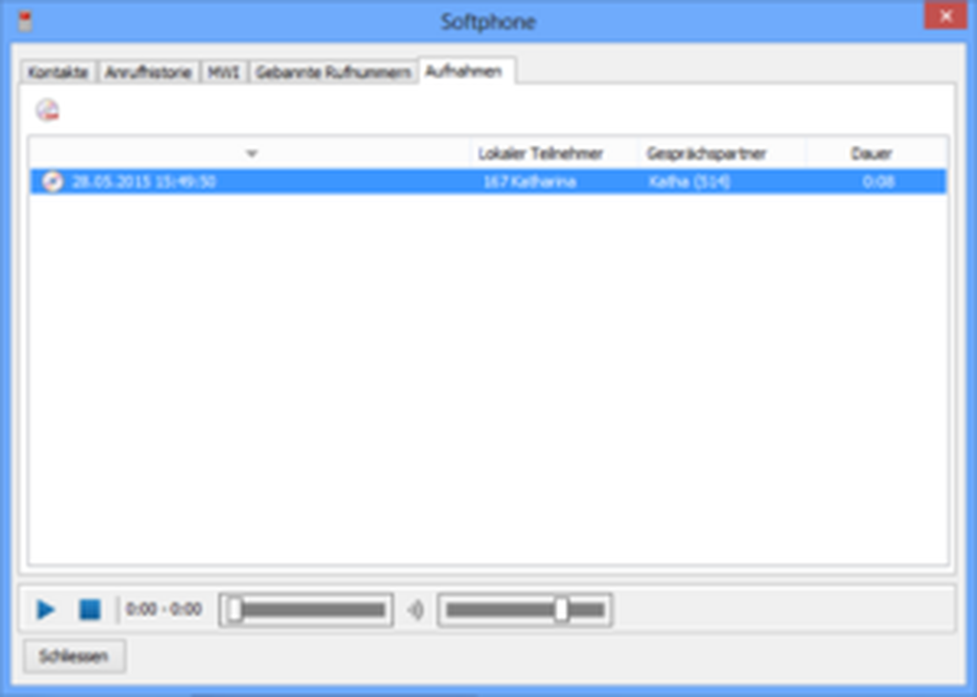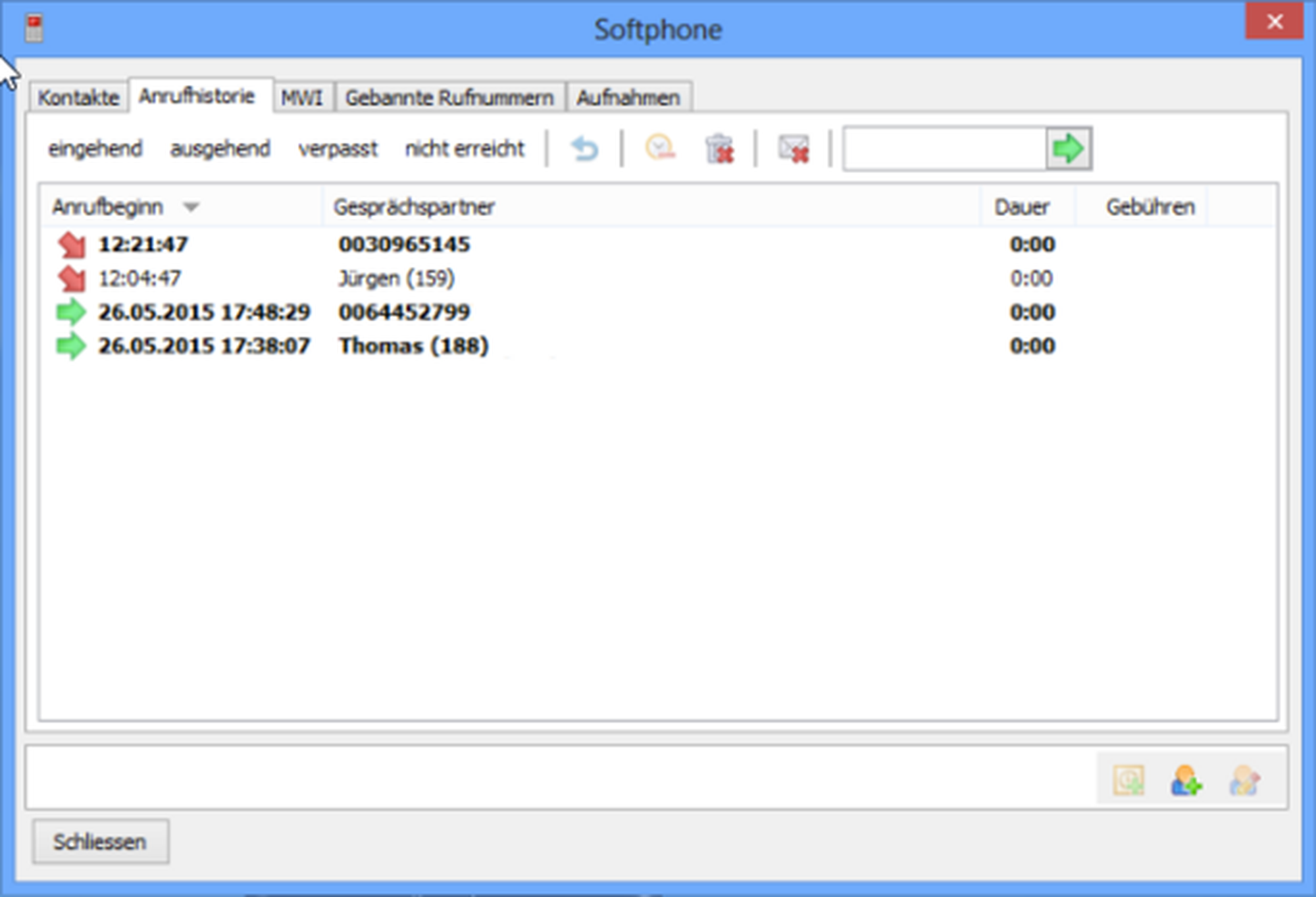 Call history tab: Having a name listed in the Call history tab with curly braces () (e. g. "John Doe (mobile)") it's not possible to call back by double click