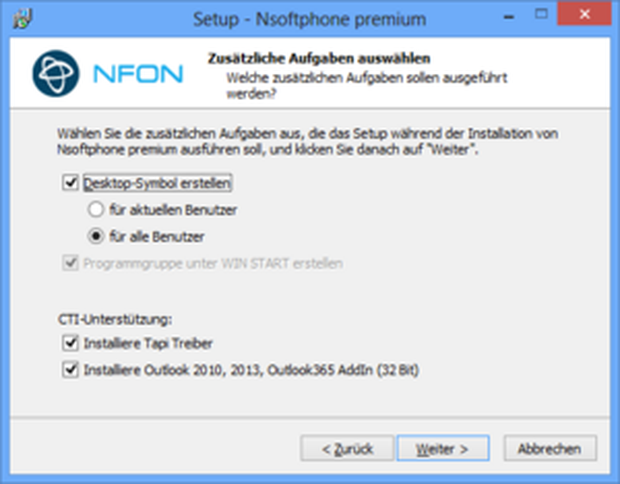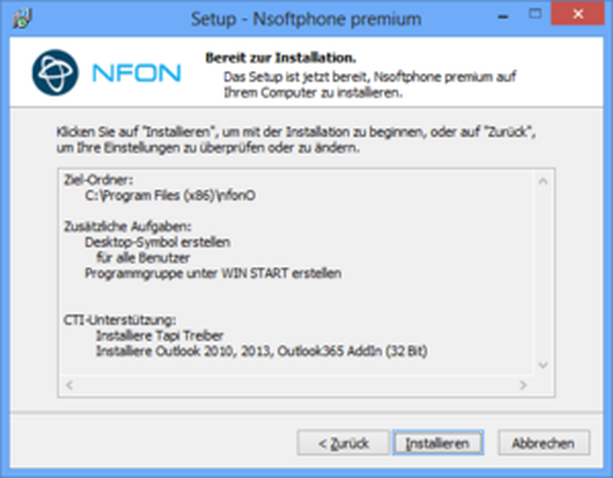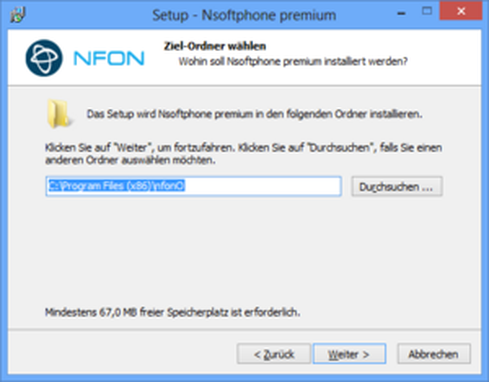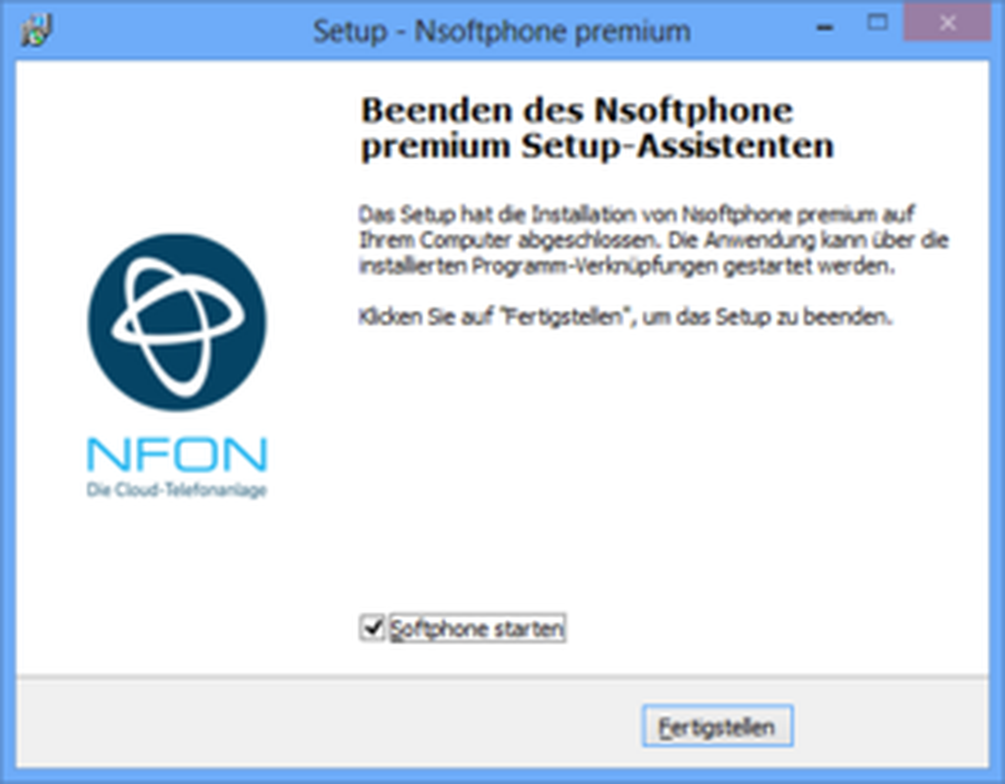 Please download the respective installation file for the Nsoftphone premium client from the downloads page under Software for Windows and start the setup.