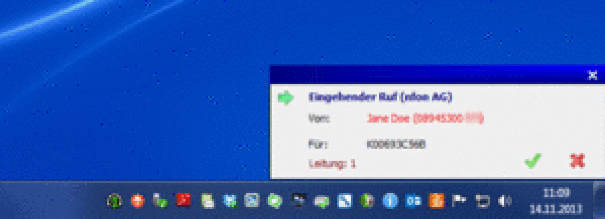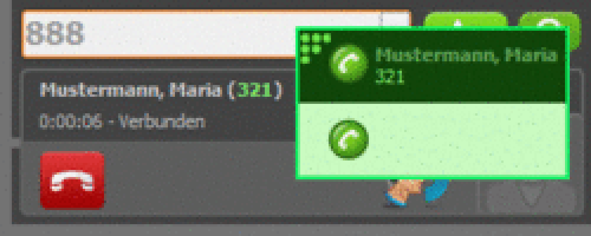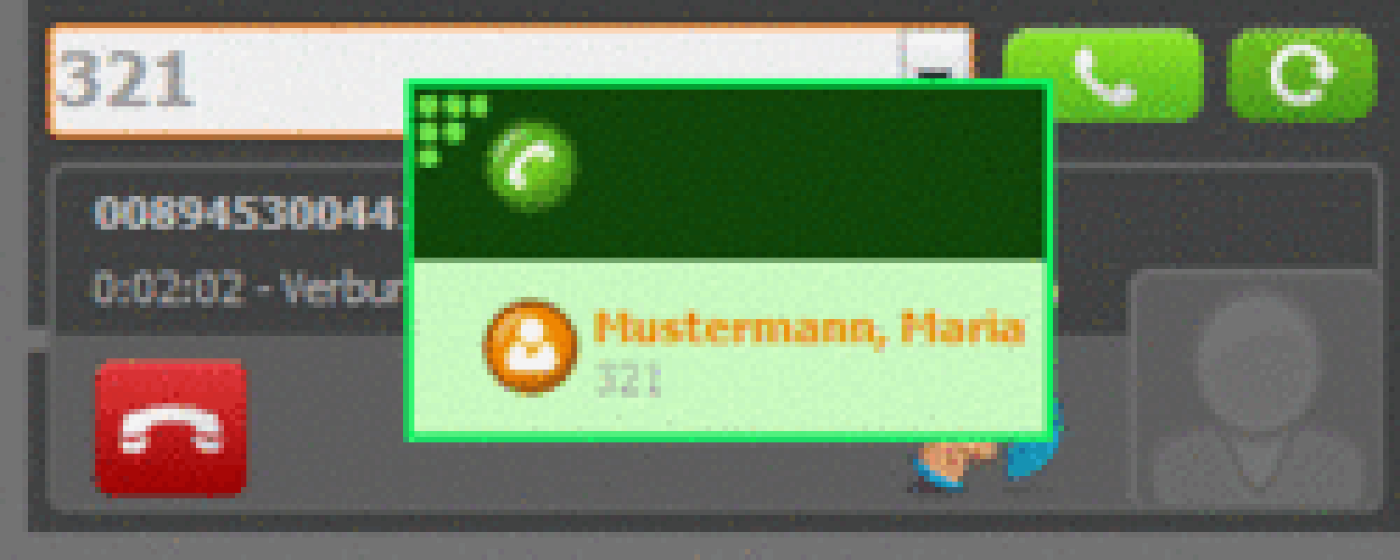 Calls that are routed through the softphone are signalled by our TSP (Telephony Service Provider) automatically to all other TAPI compliant applications (Outlook Plugin or other third party CRM software). Third party applications can use information that is offered by the phone to open contact windows or notice forms.