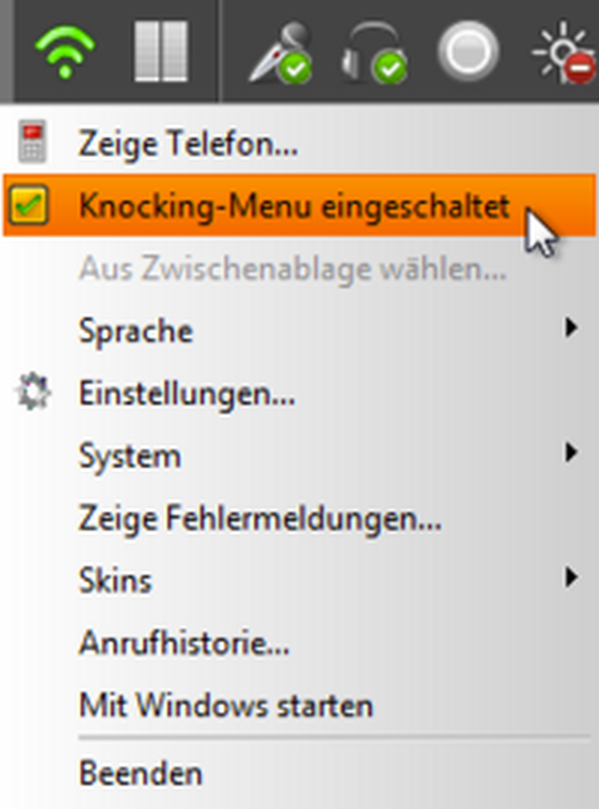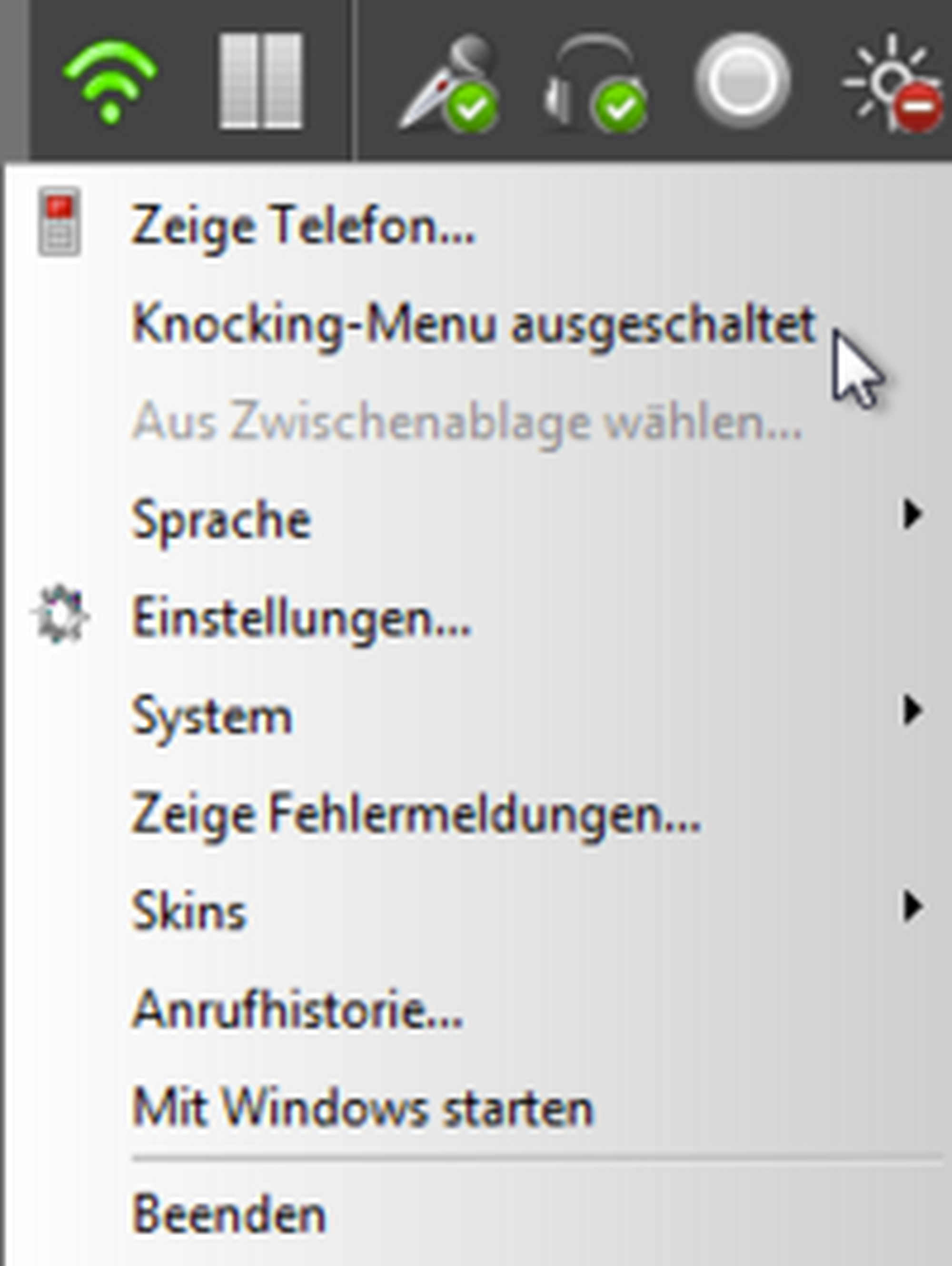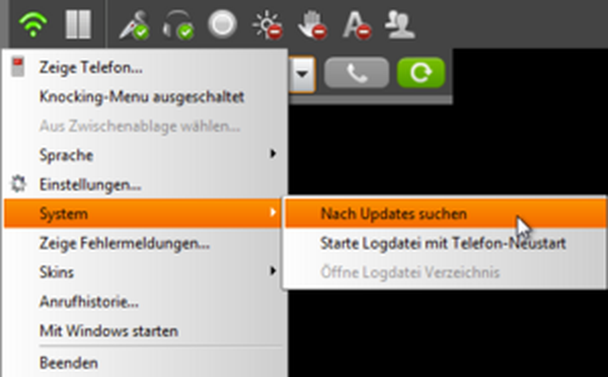 | This green transmission icon signalises an active SIP account. | |