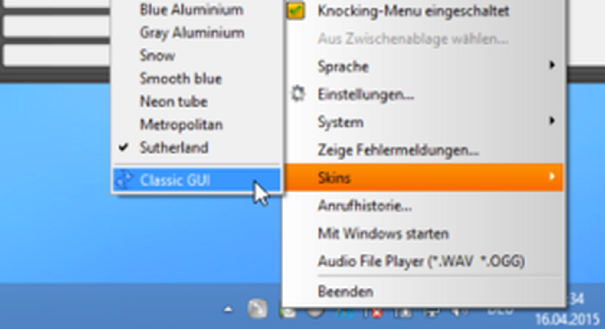 Practical usage via knocking menu