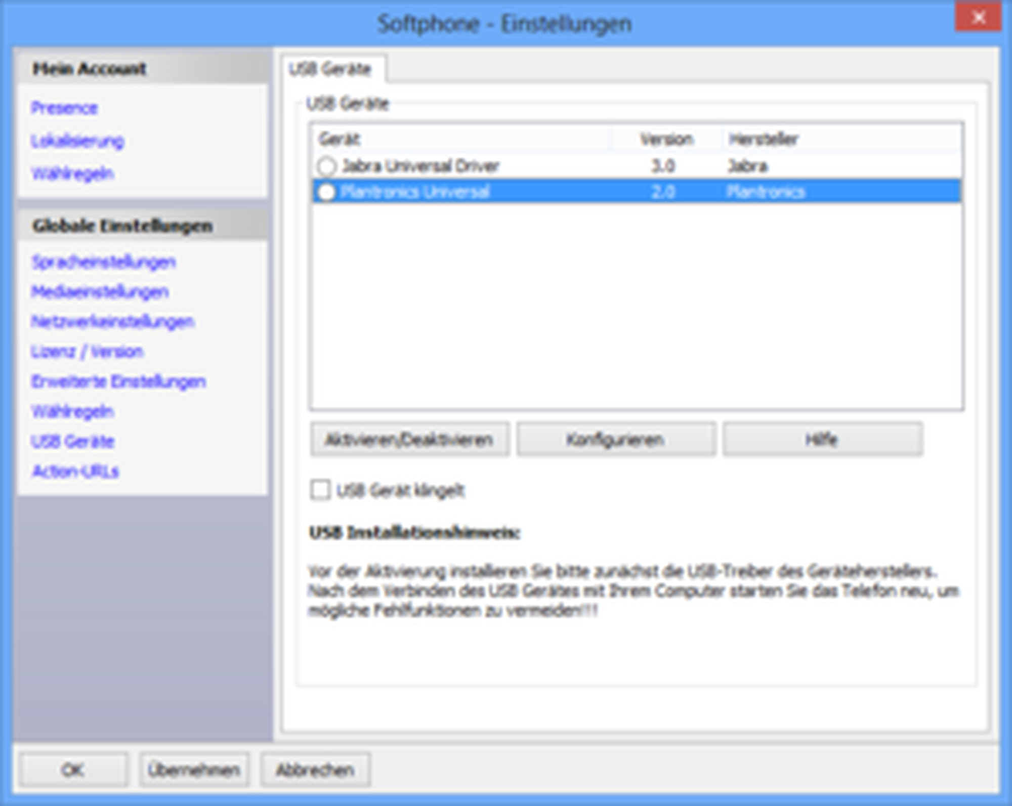 Please note however, the Plantronics Spokes™ software is a free, generally available software, which is not supported by the NFON AG. Furthermore, the NFON AG does not assume any liability for problems or damage resulting from installing the Plantronics Spokes™ software.