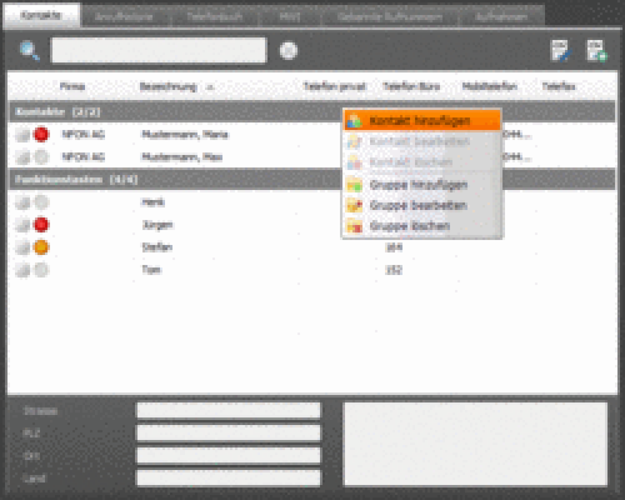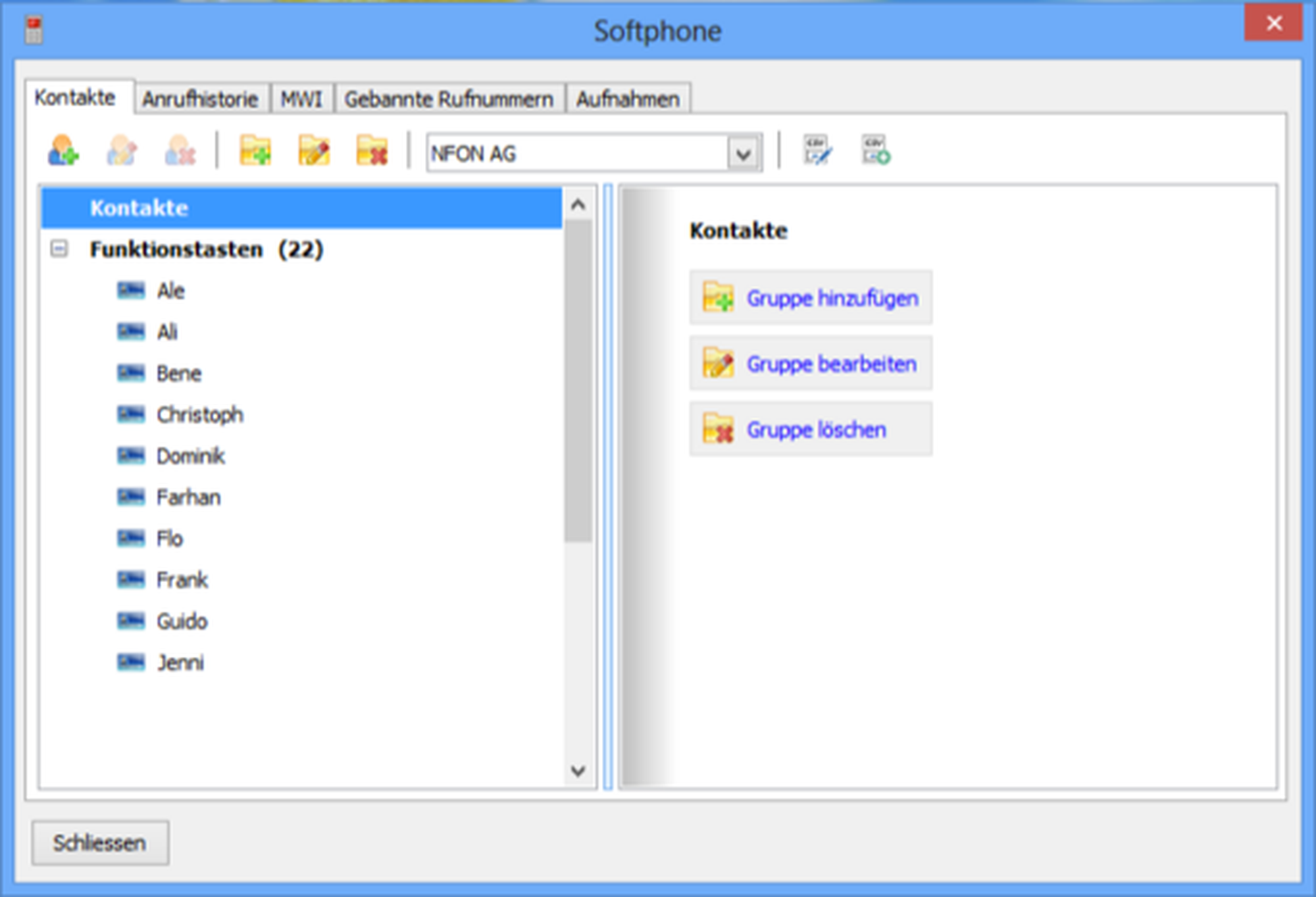 Contacts tab: By adding a contact to contact group "Funktionstasten" you're able to select this contact group via dropdown but it's not possible to confirm with "OK"