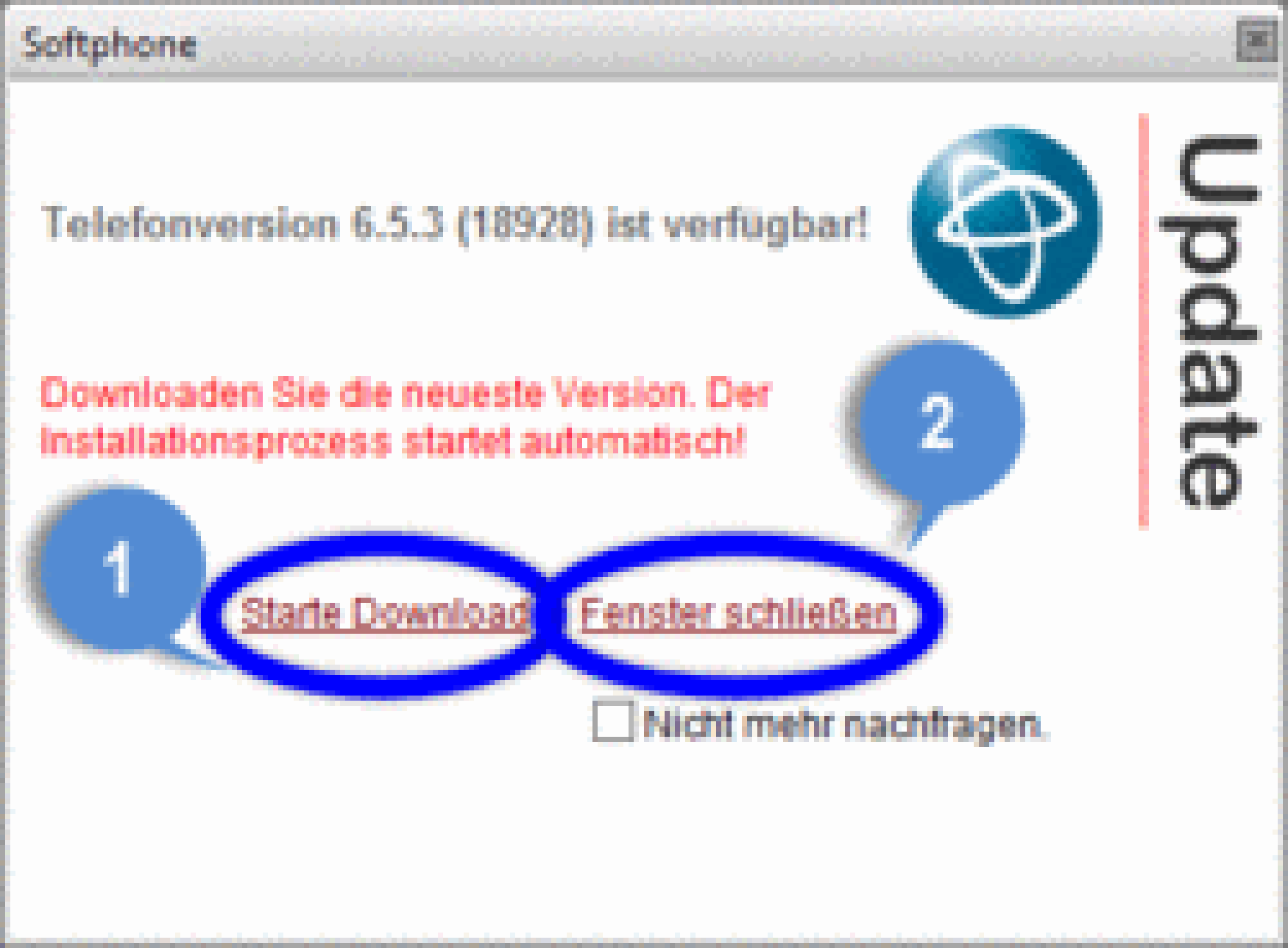 Independently whether the above mentioned update notification did not appear you're able to update the Nsoftphone premium client manually as well: