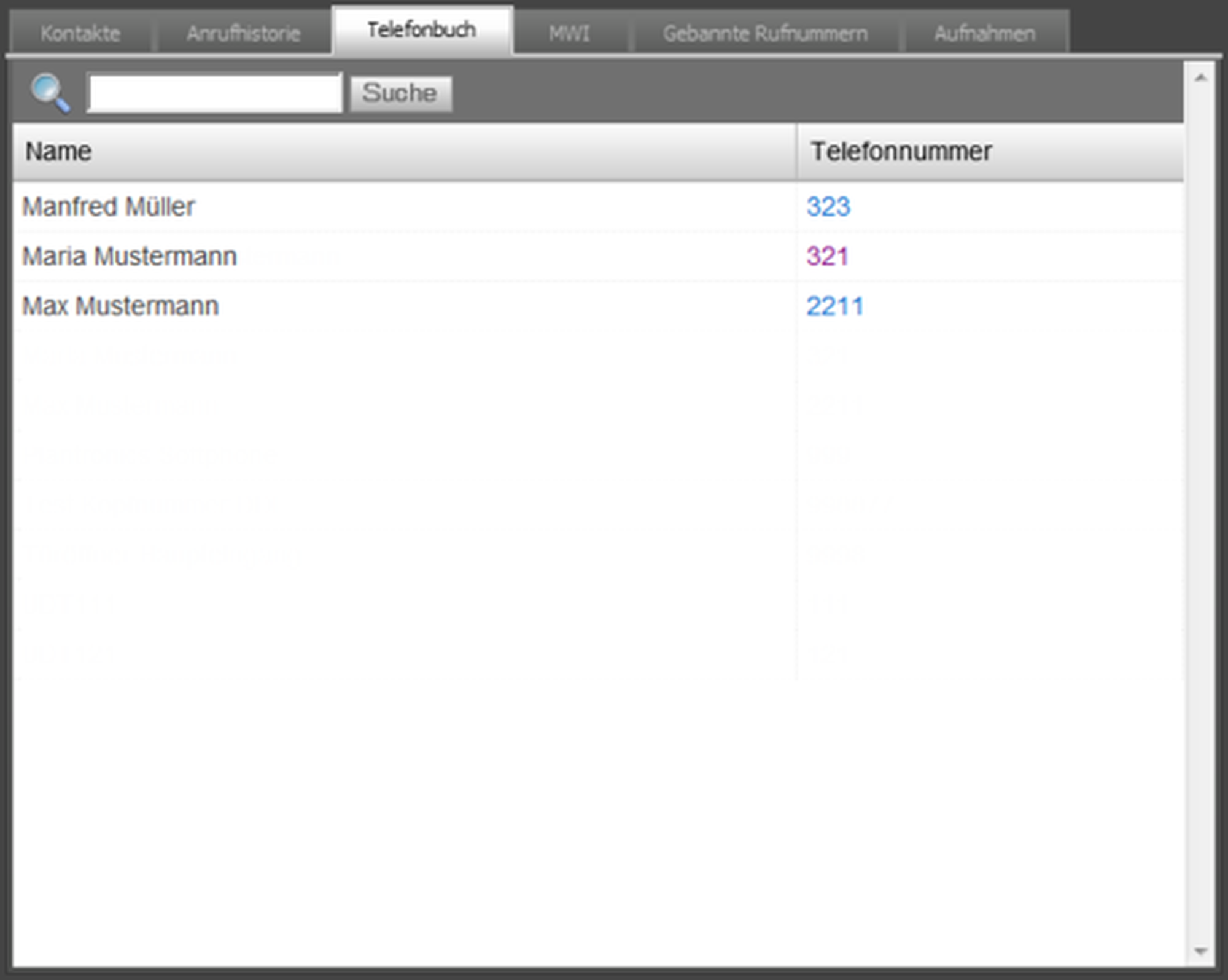 All features listed here are the available standard features by default. Enhanced features as well as an individual graphical user interface or special reportings are available on project basis (e. g. for call centers) based on specific project prices.