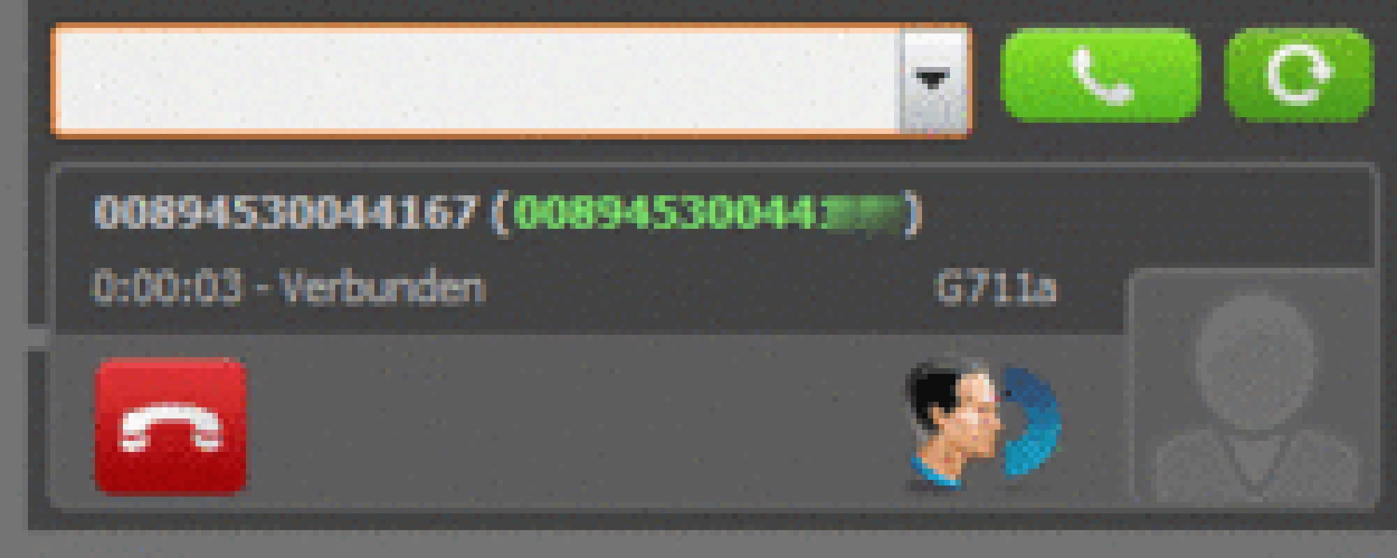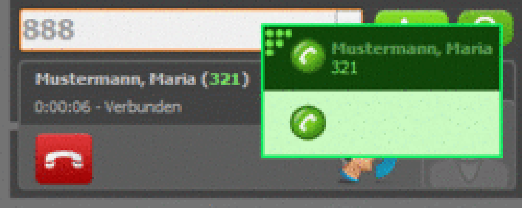 | The Nsoftphone premium software telephone is brought to front. | |
