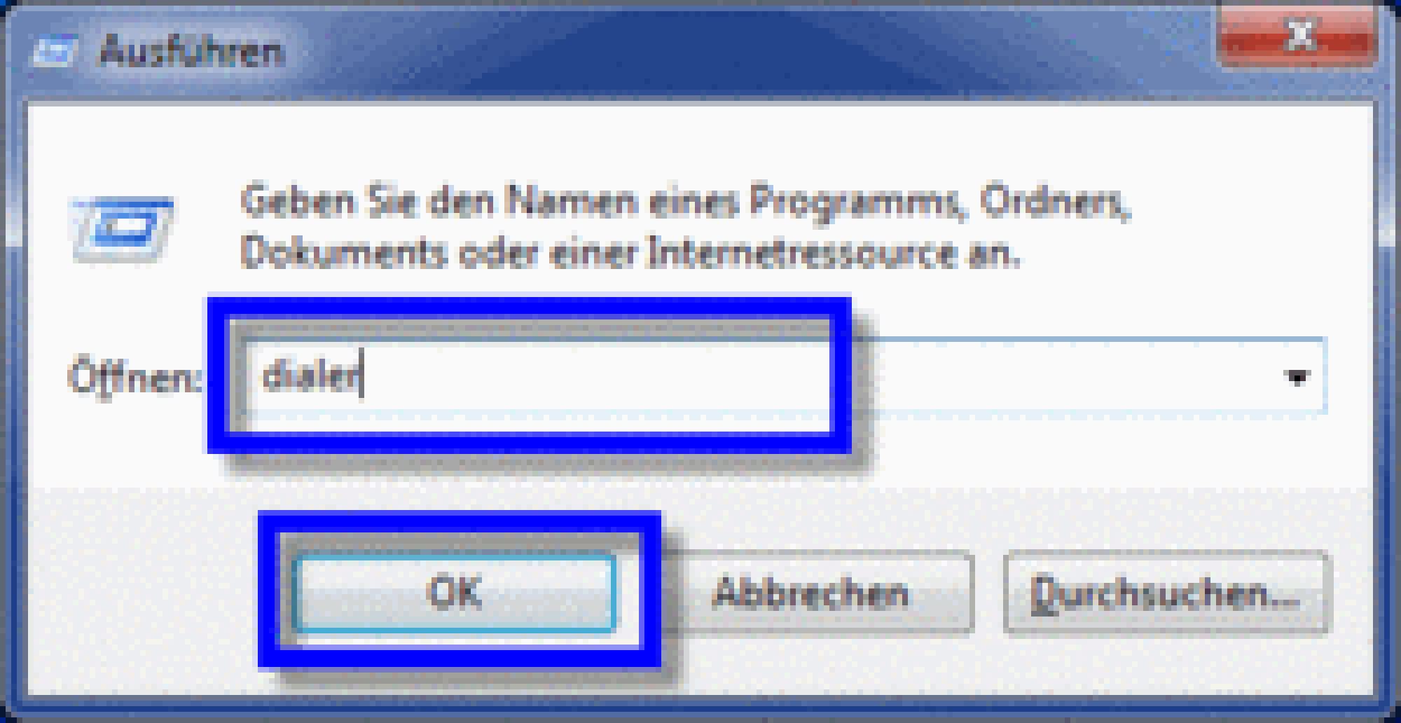The execute window opens. Please dial in "dialer" and confirm with "OK".