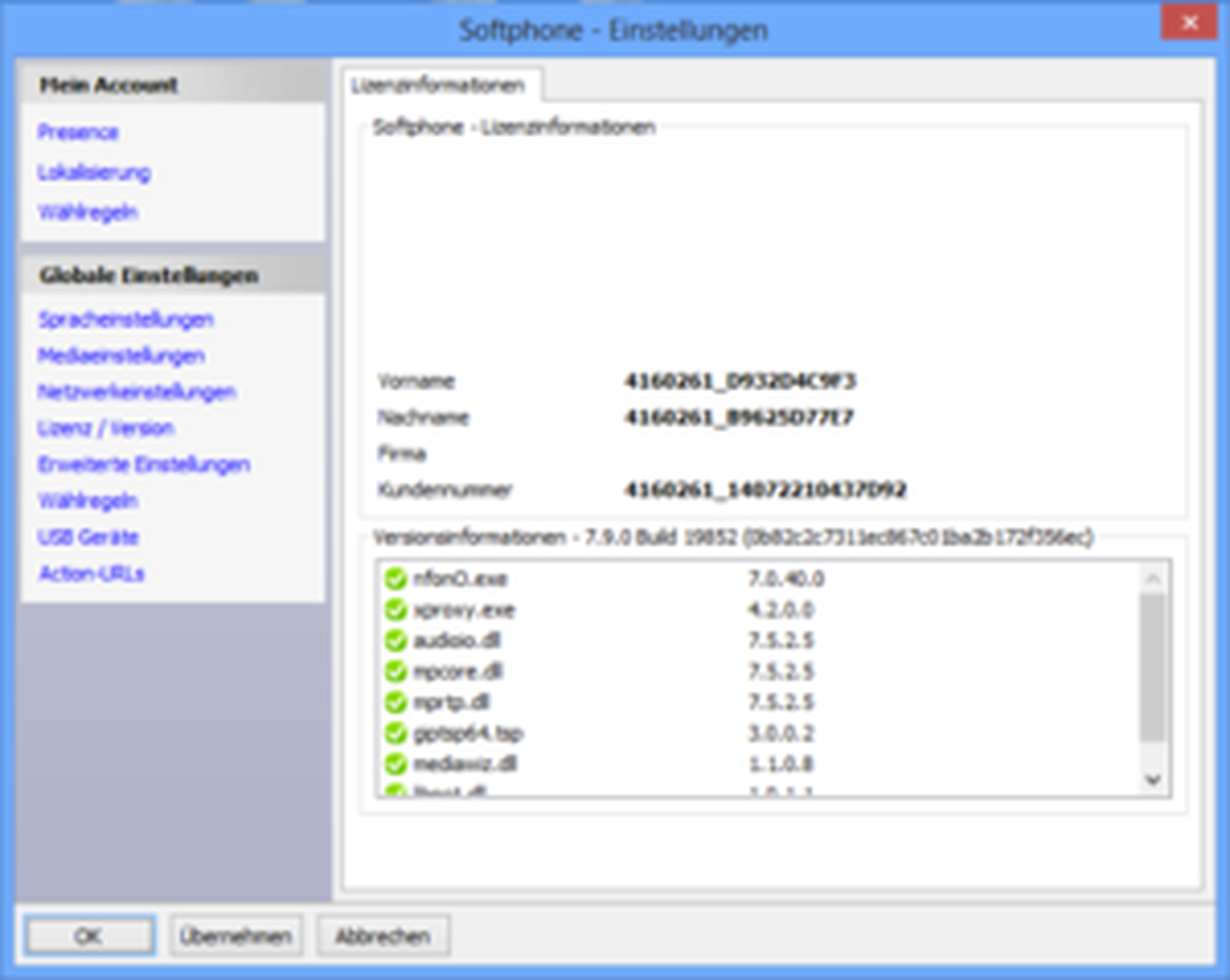 Subsequently, the settings window appears. Then click at the left select item "License / Version" from the menu selection for "Global settings".