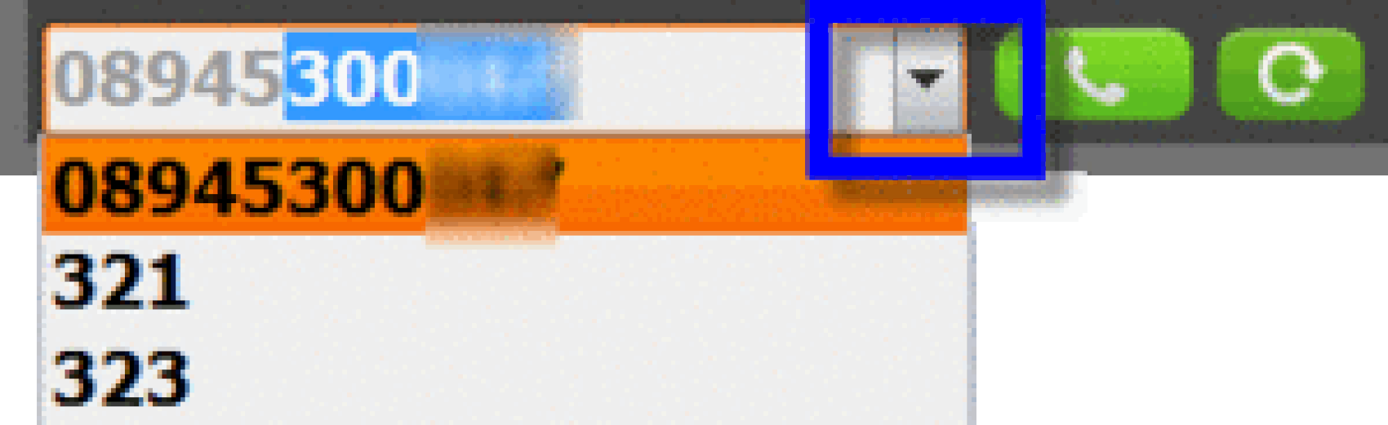 will now appear in the top left of the title bar. There you may select the number for the selected contact and phone it directly.