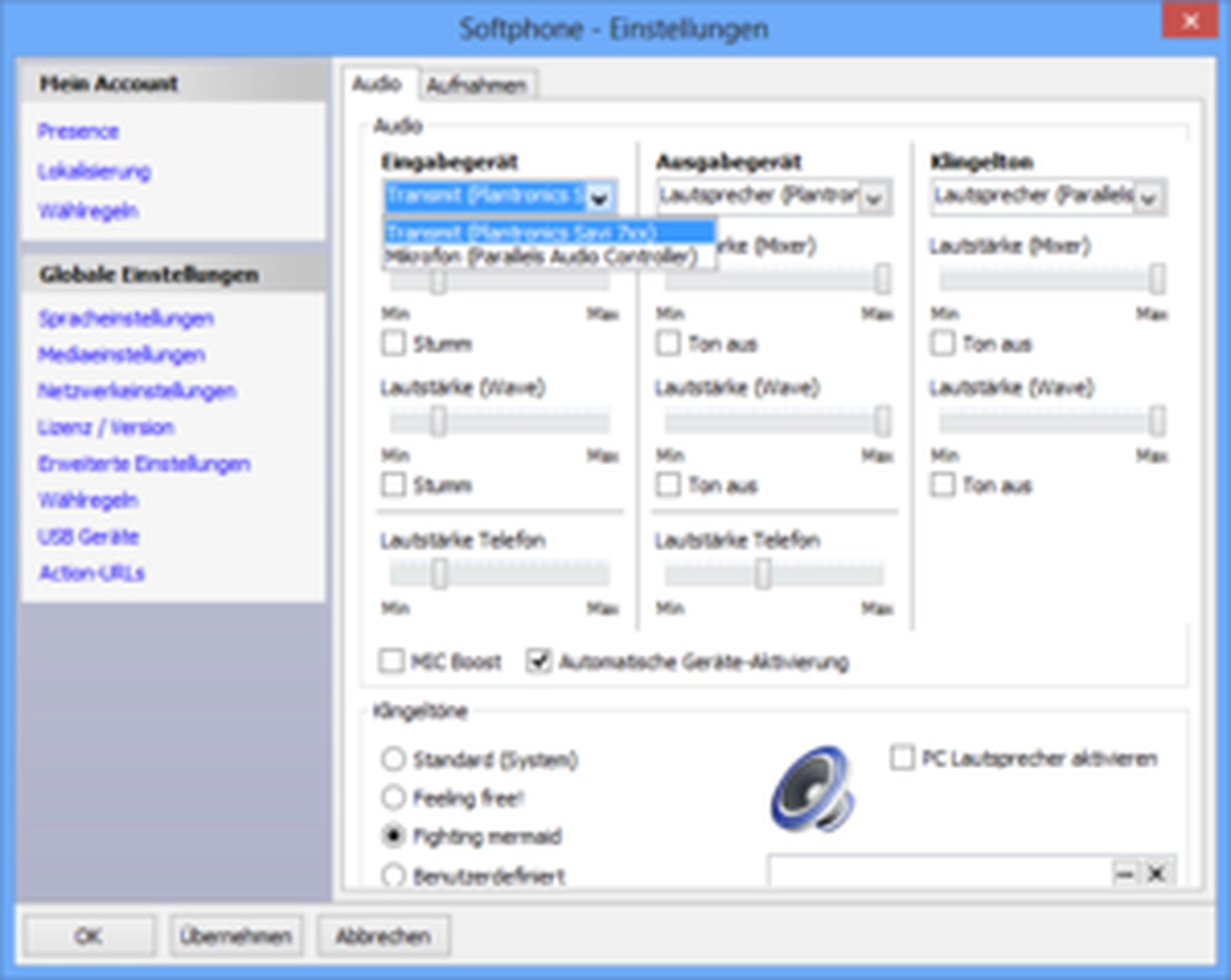 To use the Softphone with all its call control functions (like accepting and ending calls, mute, volume control) with your headset, we highly recommend to use the NFON certified Sennheiser or Plantronics headsets. For using Plantronics headsets, please download and install the Plantronics Spokes™ software. For using Sennheiser headsets with Nsoftphone premium, the Nsoftphone premium client delivers an SDK kit during installation.